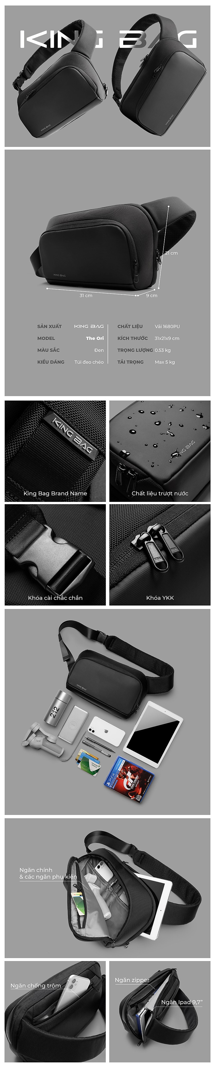 - Túi đeo chéo King Bag Ori được với kiểu dáng sang trọng, thời trang, đẳng cấp có nhiều ngăn tiện dụng phù hợp cho nhu cầu sử dụng hàng ngày của bạn.