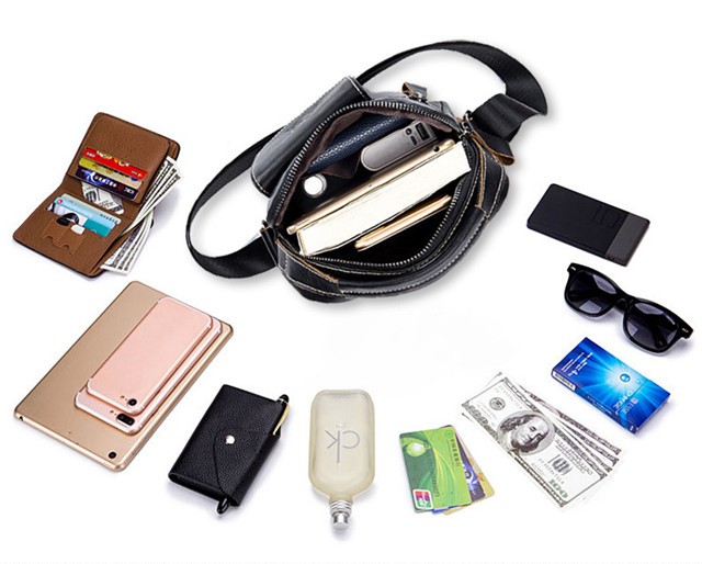Túi có thể chứa nhiều vật dụng cùng lúc như: 02 cái iphone, sạc dự phòng lớn, ví, ipad mini, sổ tay…