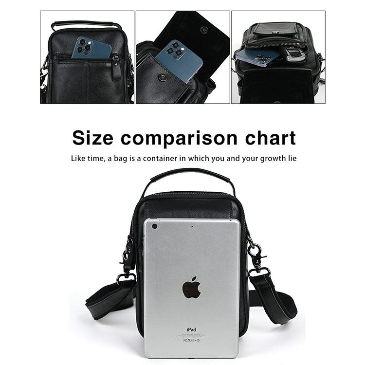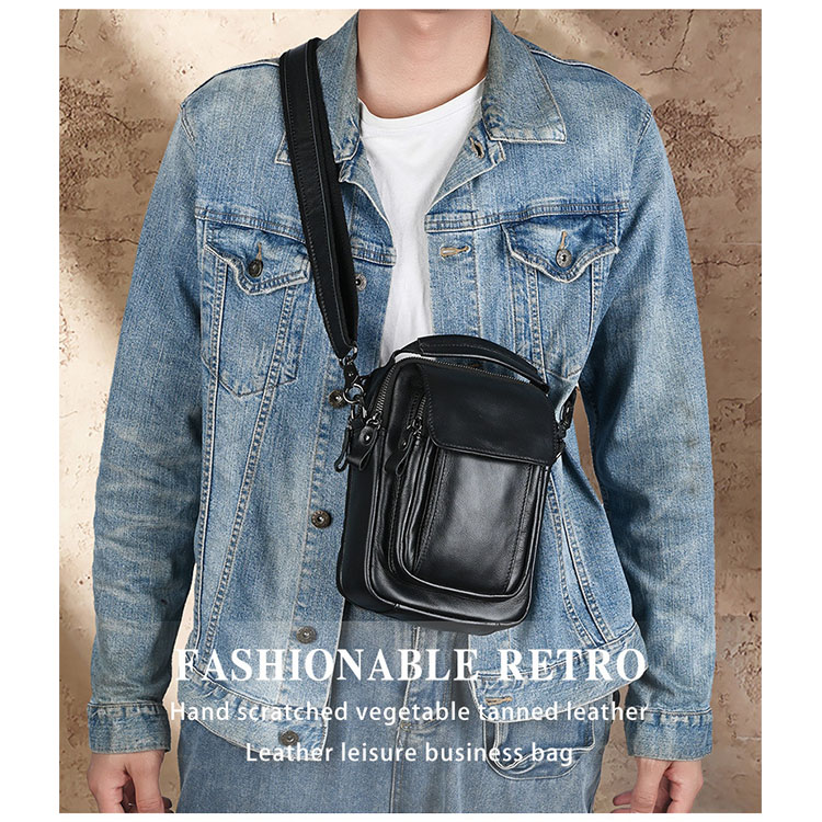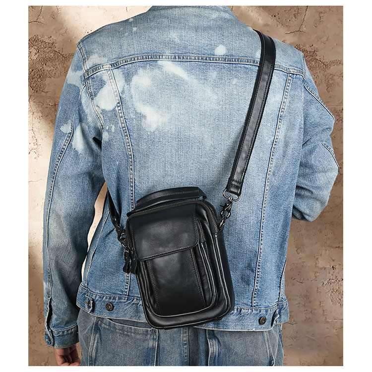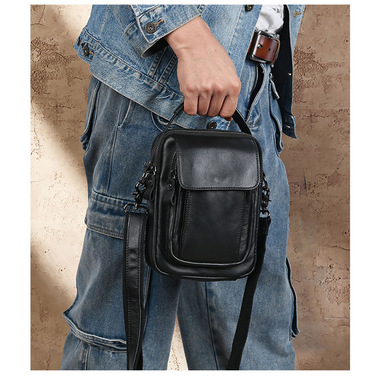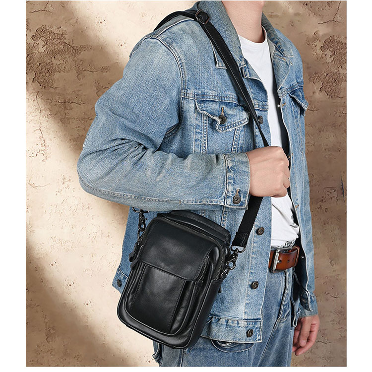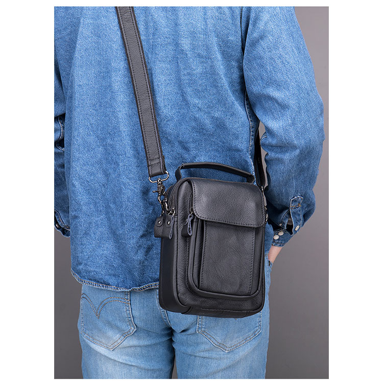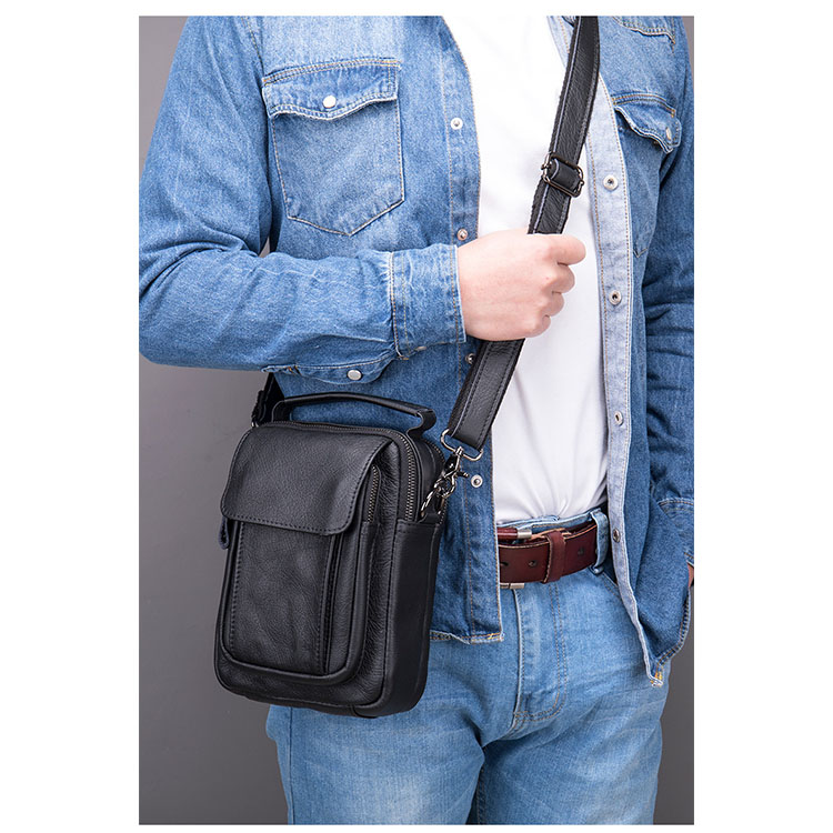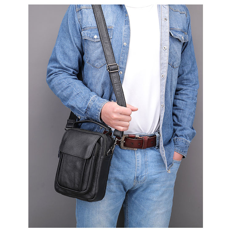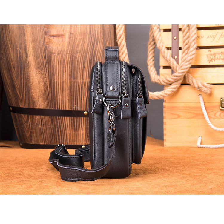 Túi đeo chéo nam mini BHM7910 duy nhất 1 màu đen tuyền, chất da bò cao cấp nguyên tấm cùng thiết kế nhiều ngăn nhỏ giúp bạn để phụ kiện khoa học nhất.