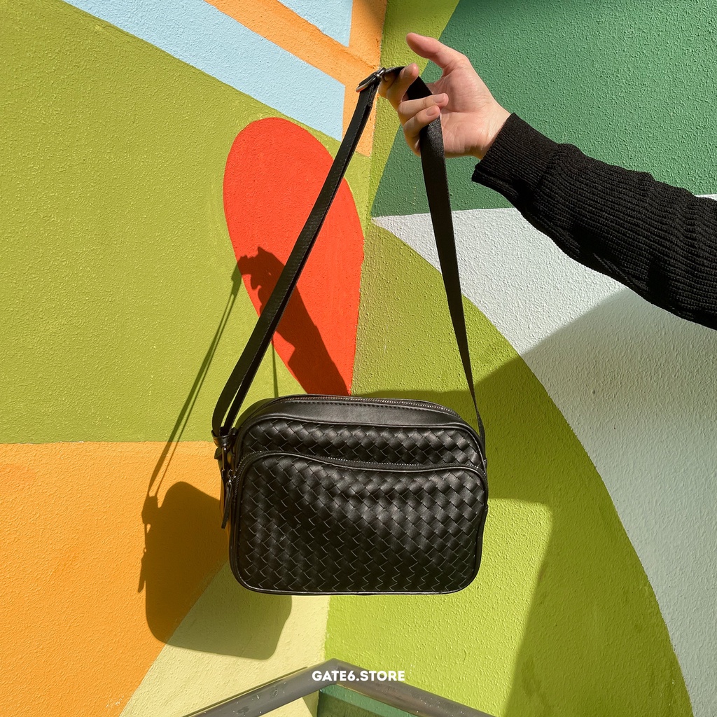 Giới thiệu Túi đeo chéo Nam Nữ da PU, cặp xách công sở họa tiết đan chéo với 2 ngăn siêu lớn kiểu Hàn GATE6 - 20146
