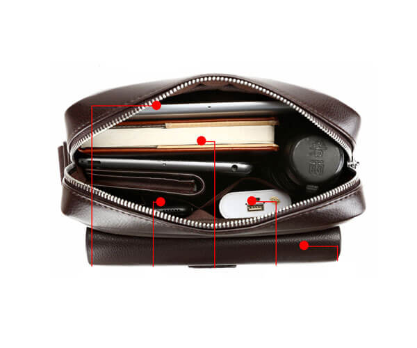 Form túi rộng với 2 ngăn chính và nhiều ngăn phụ, thoải mái cho bạn đựng các vật dụng cần thiết khi đi ra ngoài. Các chàng sẽ gọn gàng và chỉn chu hơn khi các món đồ lỉnh kỉnh nhỏ như máy tính, điện thoại, ipad, giấy tờ, sổ sách đã được bỏ gọn vào túi.