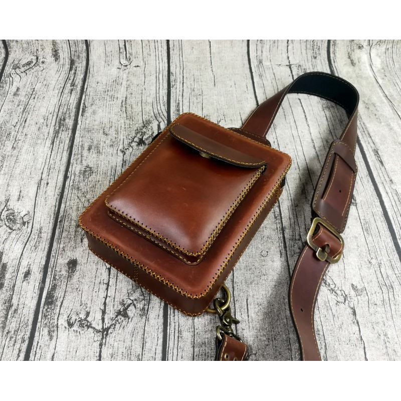 Túi đeo chéo nam, túi đeo trước ngực, da bò thật bảo hành 5 năm Túi đeo chéo trước ngực cá tính với đường chỉ khâu tay. Thiết kế mới lạ, nổi bật cá tính riêng của bạn. Túi được thiết kế dành cho các tablet 8 inch.