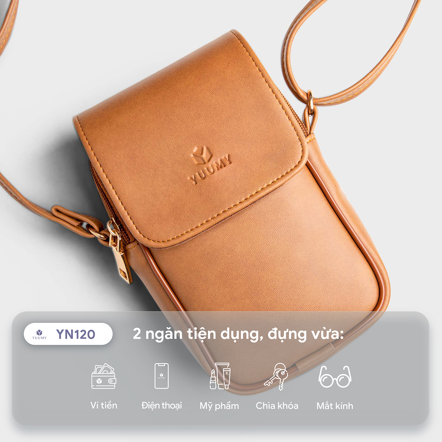 Yuumy YN120 được thiết kế đơn giản, nhỏ gọn và vô cùng tiện dụng. Với khóa kéo trần và nắp gập chắc chắn, cùng với quai đeo được gấp 2 lớp tạo cảm giác an toàn và tự tin hơn khi sử dụng và bảo quản những vật dụng giá trị của bạn.