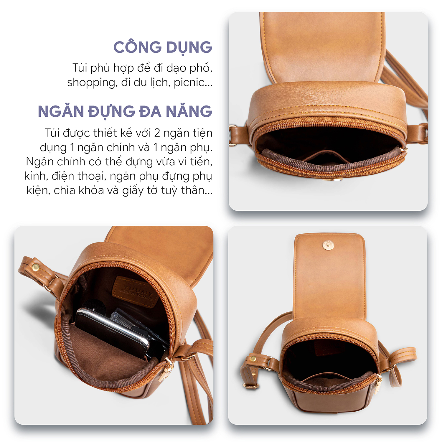 - Công dụng: Đựng điện thoại, thẻ card và tiề