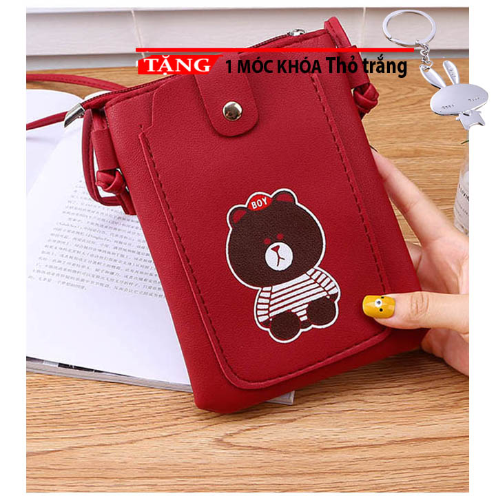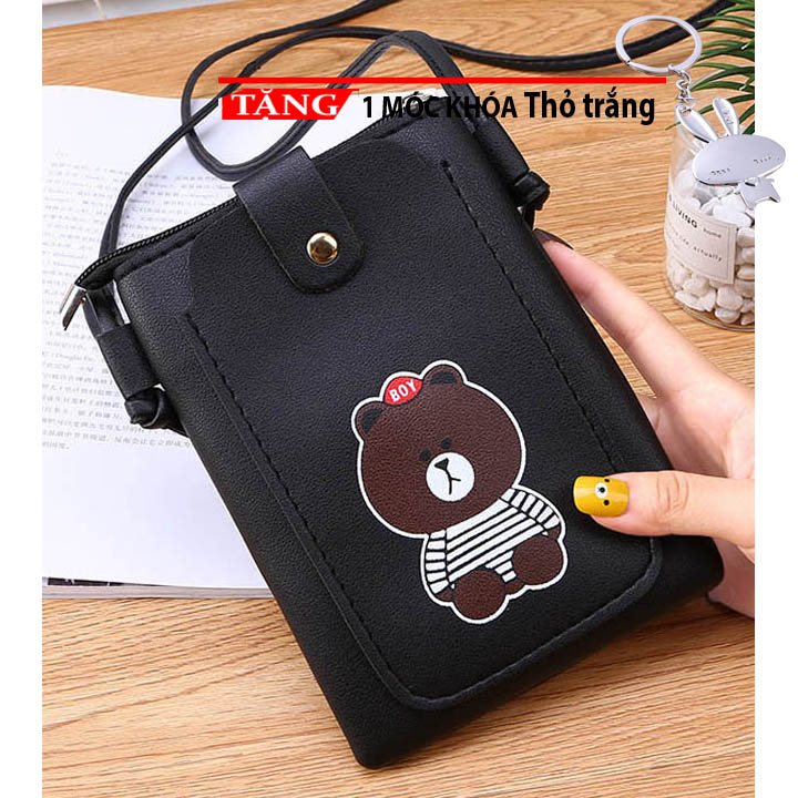 Túi nữ đeo chéo thời trang đựng điện thoại dọc nắp hình gấu nâu VN4 Shalla Túi da đeo chéo có thiết kế gọn nhẹ,thời trang giúp bạn dễ dàng kết hợp với quần áo. Tiện dụng cho bạn khi ra ngoài.