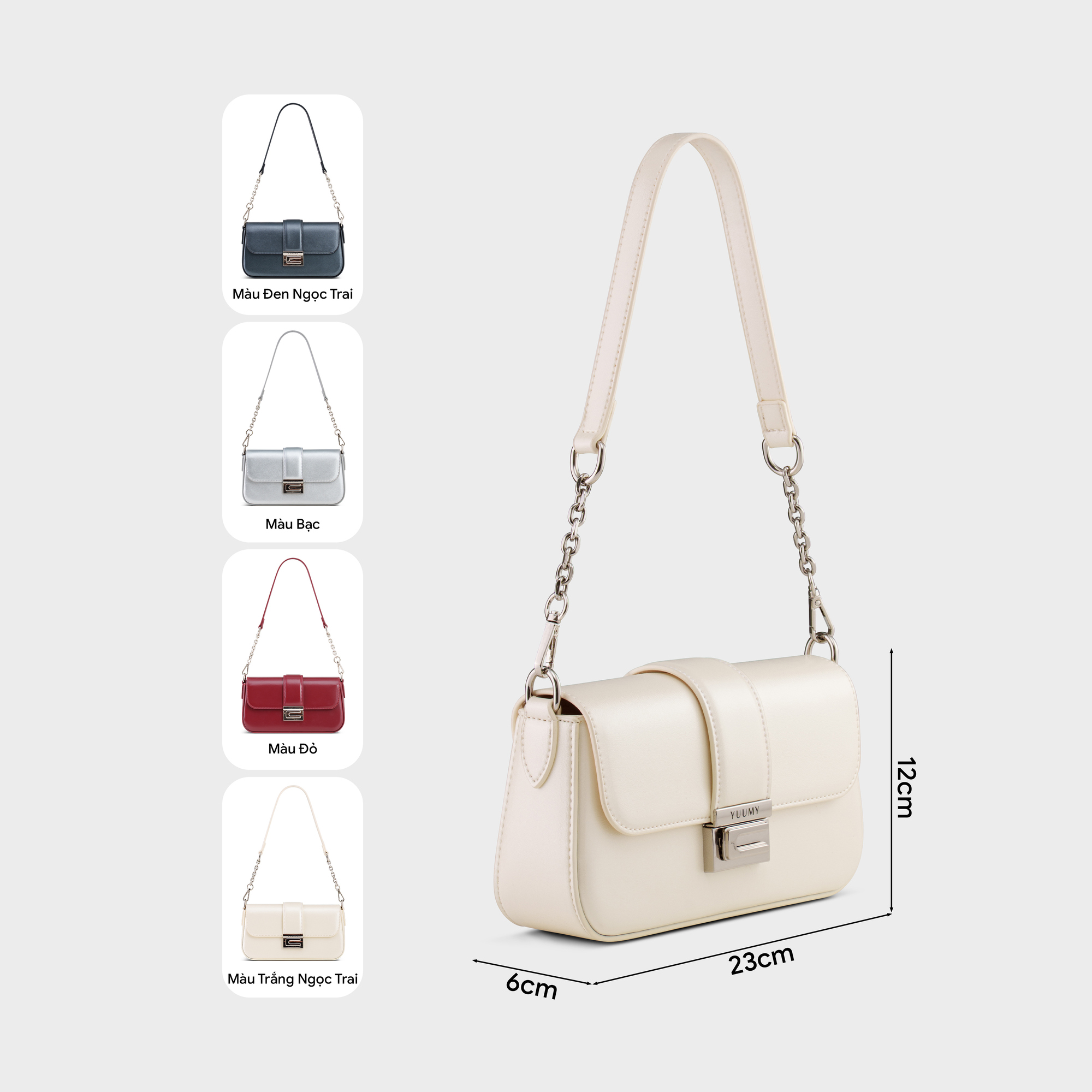 Túi đeo chéo nữ YUUMY YN316 sở hữu thiết kế thanh lịch với chất da tổng hợp bóng đẹp, cứng cáp. Kết hợp cùng khóa cài trượt kim loại tạo điểm nhấn riêng tinh tế và khác biệt. Túi có thể đeo vai hoặc đeo chéo linh hoạt, tiện phối trong nhiều dịp. Form túi gọn nhưng vẫn đủ sức chứa những vật dụng cần thiết như điện thoại, ví tiền, son, chìa khóa, tai nghe và một vài món đồ cá nhân nhỏ. Một mẫu túi không chỉ đẹp ở vẻ ngoài mà còn tạo cảm giác cuốn hút trong từng chi tiết nhỏ.