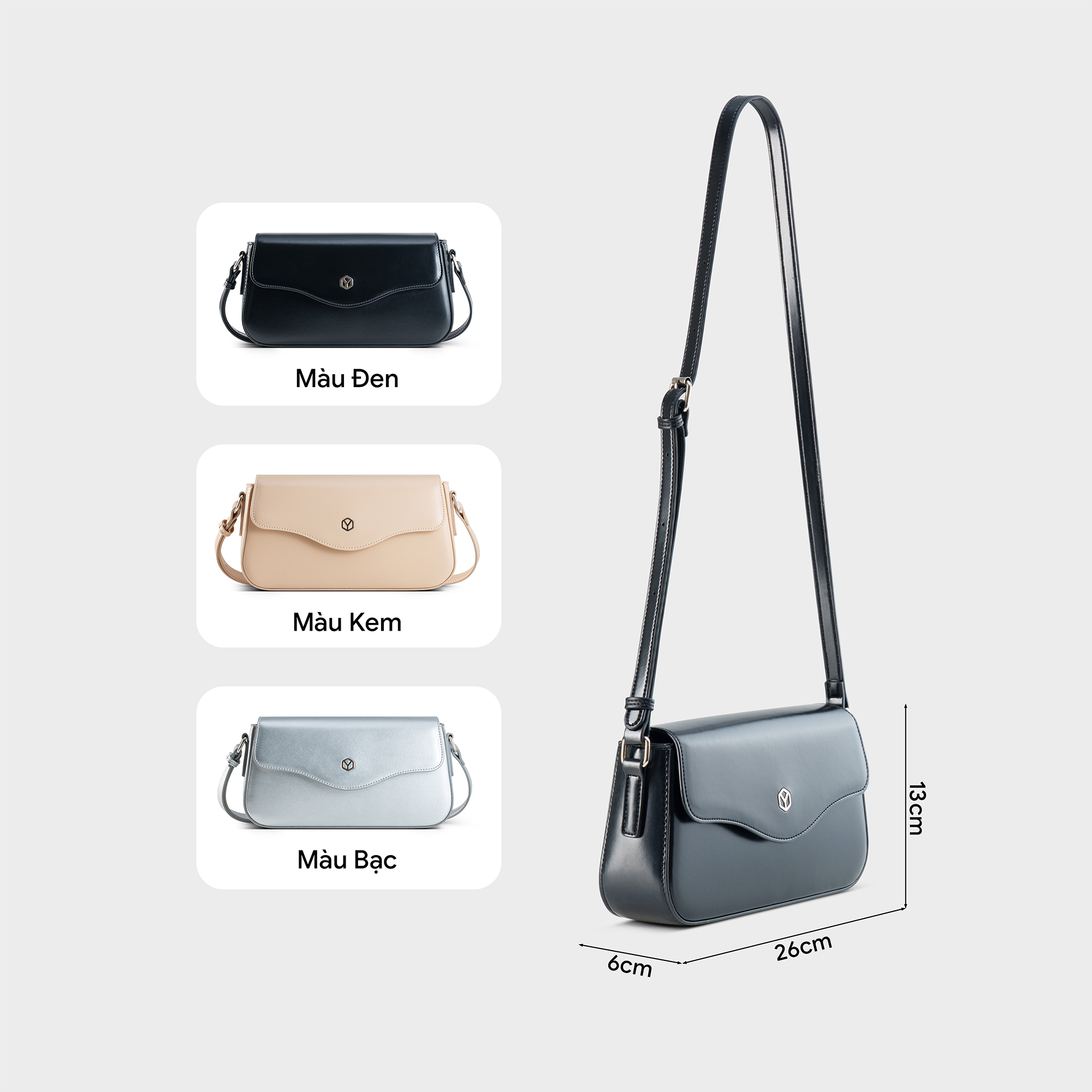 Yuumy YN344 gợi cảm giác dịu dàng ngay từ cái nhìn đầu tiên. Đường cong mềm mại ôm trọn phom túi, kết hợp bề mặt da trơn bóng tạo nên vẻ đẹp nữ tính, nhẹ nhàng mà đầy cuốn hút. Thiết kế linh hoạt đeo chéo hoặc đeo vai, dung tích vừa đủ cho điện thoại, ví, son và những vật dụng thân quen, để mỗi lần mang theo là một lần nàng cảm nhận được sự nữ tính rất riêng của Yuumy.