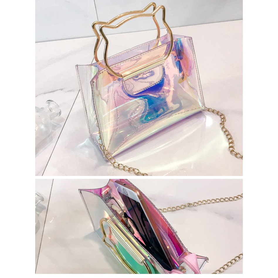 Giới thiệu Túi Đeo Chéo Pha Lê Tay Cầm Hình Mèo Có Dây Kéo