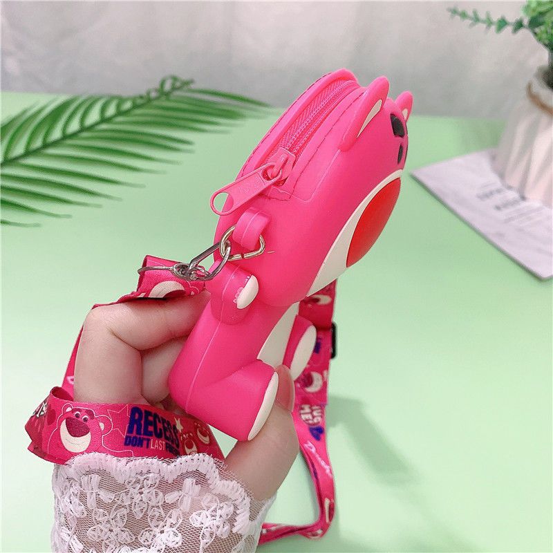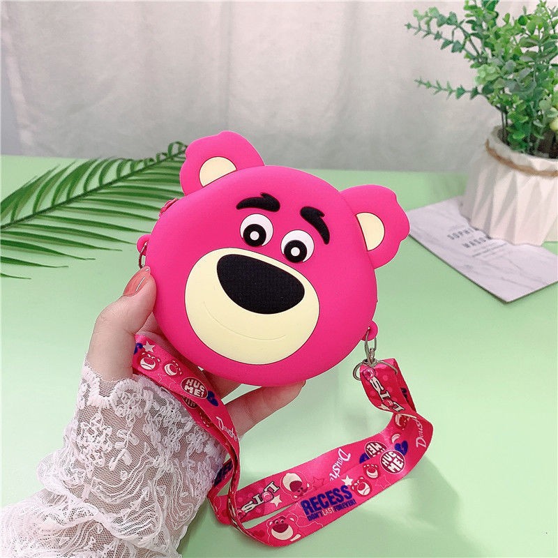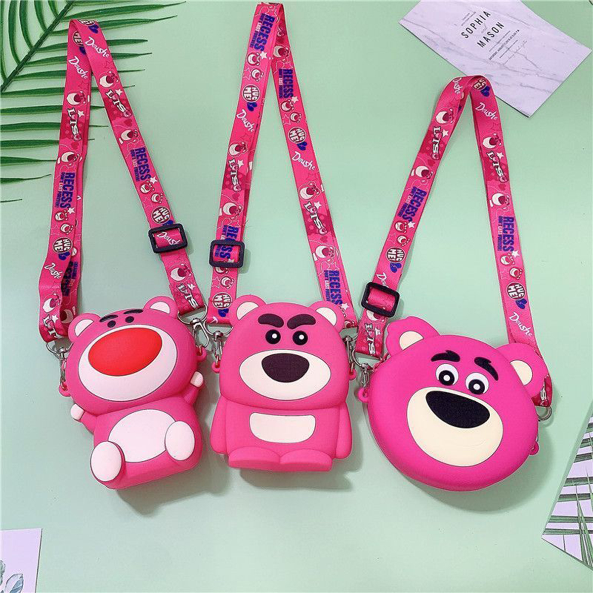 Túi đeo chéo Silicon hình gấu hồng Lotso dưới đây là món quà dễ thương dành cho các bé.