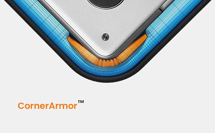Sử dụng công nghệ sáng chế tiên tiến của Hoa Kỳ CornerArmor trang bị phía dưới túi chống sốc một lớp đệm bảo vệ 360* xung quanh vành túi (4 góc) một cách an toàn như một túi khí xe hơi.