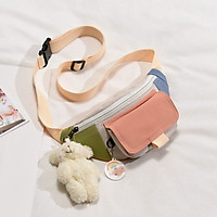 Túi Bao Tử Đeo Chéo Canvas Mini Màu Pastel Trẻ Trung Thời Trang Tặng Kèm Gấu Bông Treo Túi