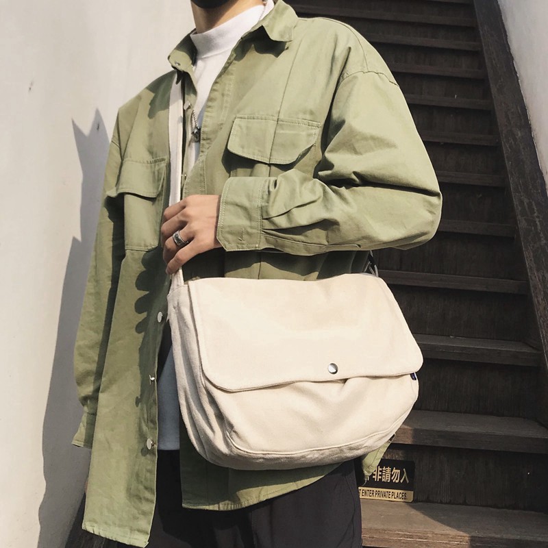 Túi đeo chéo UNISEX vải canvas 2 màu trắng đen phong cách Ulzzang