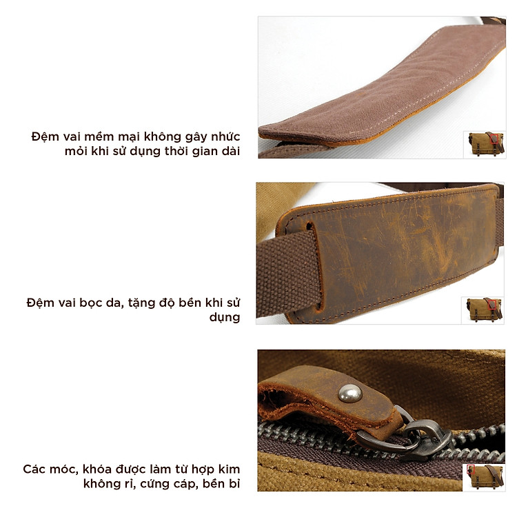 = Túi đeo chéo vải bố chống thấm AT Leather DC16928 được thiết kế dựa trên sự đa năng trong phong cách sử dụng. Có quai xách kèm theo, có thể sử dụng như 1 chiếc cặp đi làm, đi học bình thường. Hoặc dùng như túi đeo chéo cá tính.