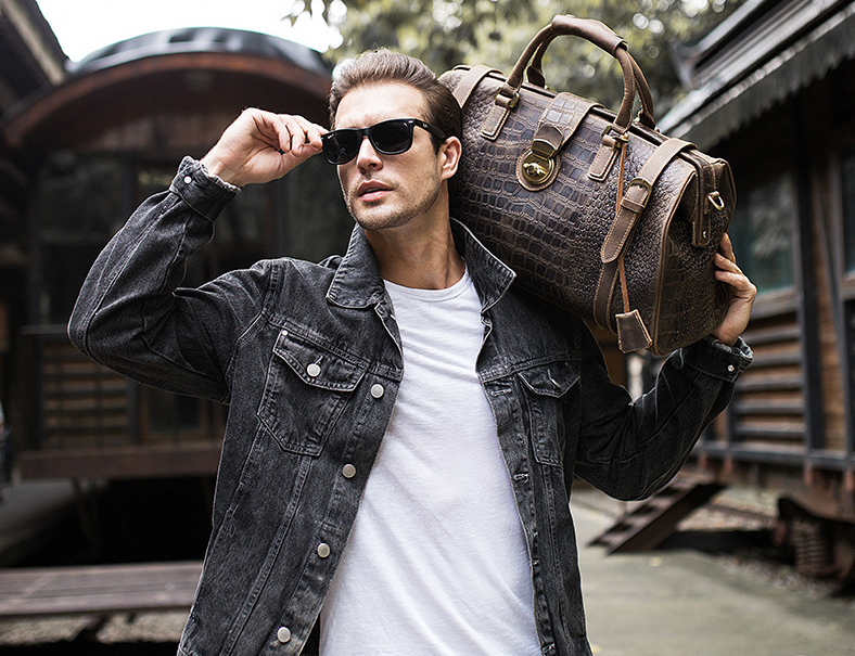 Túi Du Lịch Vân Cá Sấu TX002 với chất liệu được làm từ lớp đầu tiên của da bò nguyên tấm, mặt ngoài được dập vân cá sấu tinh tế.