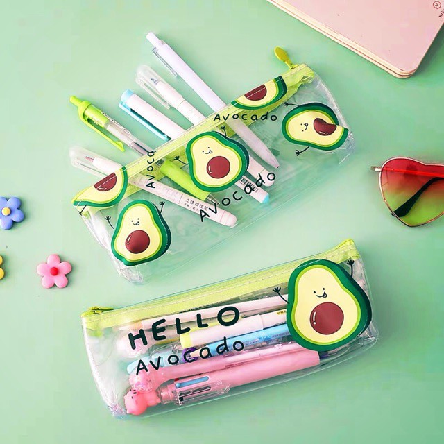 Túi đựng bút trong suốt hình quả bơ nhiều mẫu, Bóp đựng bút viết xinh xắn