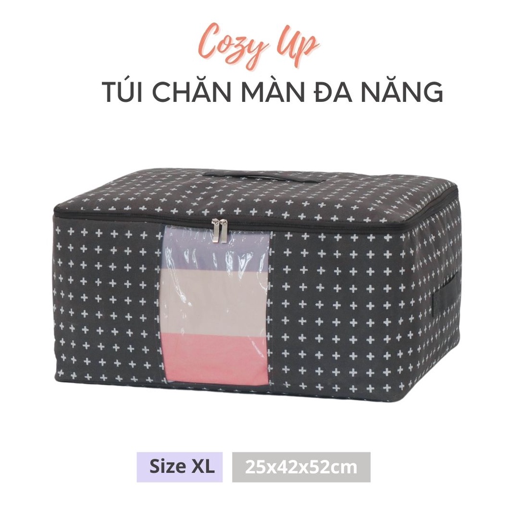 CÔNG DỤNG: - Khi khách đến nhà thì lúc nào cũng cần phải có chỗ ngủ tươm tất. Chăn màn sạch sẽ để họ cảm thấy thoải mái khi nằm ngủ. Những chăn màn không sử dụng thường xuyên nhưng cần phải có phòng hờ khi khách đến. Hoặc hết mùa đông cần phải cất bớt chăn màn đi - Túi đựng chăn màn Morning House giúp bảo quản đồ đạc, chăn màn của bạn tốt hơn, tránh phải bụi bẩn. Phom túi cứng cáp giúp dễ dàng xếp chồng lên nhau một cách vuông vức - Hộp dựng lên đẹp, có độ thẩm mỹ cao nên cũng tăng tính thẩm mỹ cho căn phòng của bạn. Có quai xách nên di chuyển, kéo ra kéo vô rất tiện