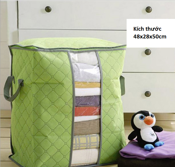 Túi vải đựng chăn màn, quần áo được sản xuất từ vải không dệt, tráng màng than hoạt tính có tác dụng chống ẩm mốc và ướt, độ bền và độ dai cao, dễ tiêu hủy nên rất thân thiện với môi trường.