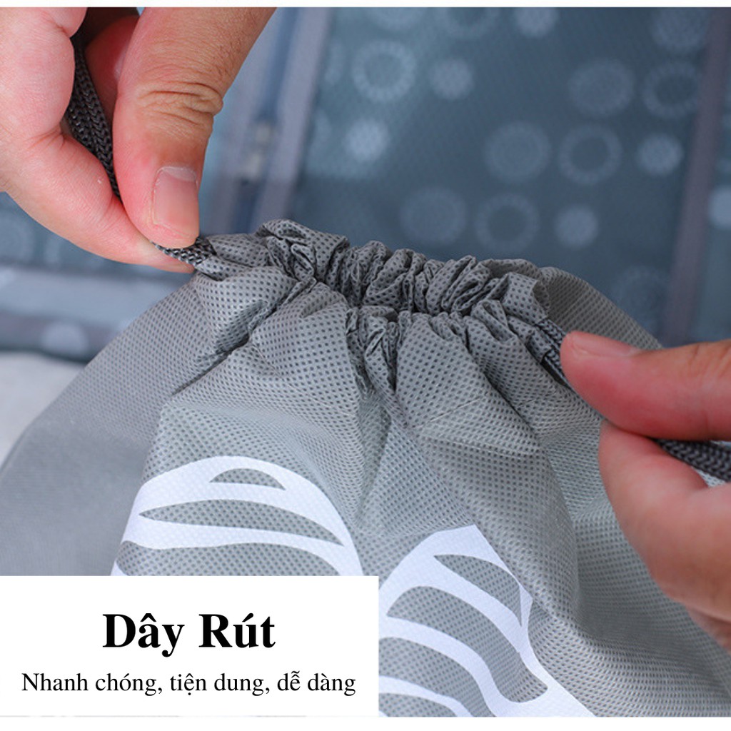 🔻 Thông tin sản phẩm - Chất liệu : Polyester không dệt, chống thấm, chống ẩm mốc - Kích thước: size lớn 42*31 cm , size nhỏ : 35*26 cm - Dây rút tiện dụng - Giặt sạch dề dàng - Màu sắc đa dạng