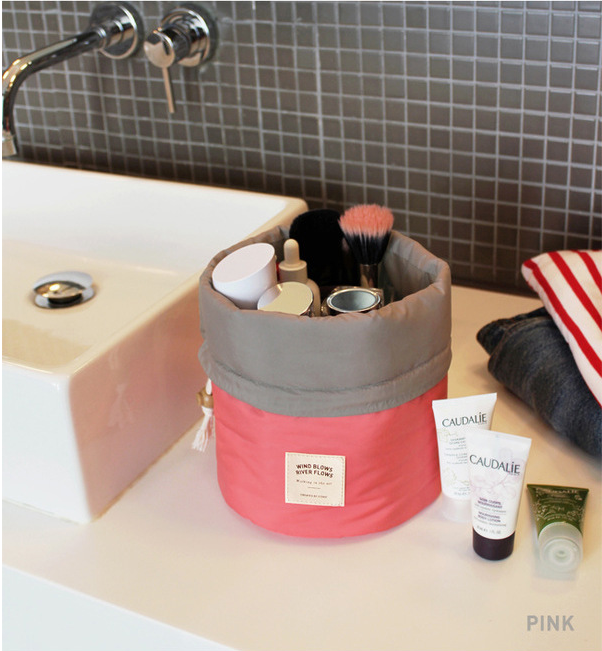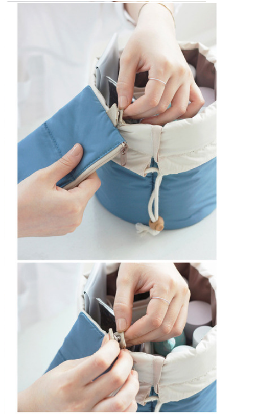 Travel Korean version of the cylinder large capacity waterproof cosmetic bag girl portable finishing cosmetics wash bag co