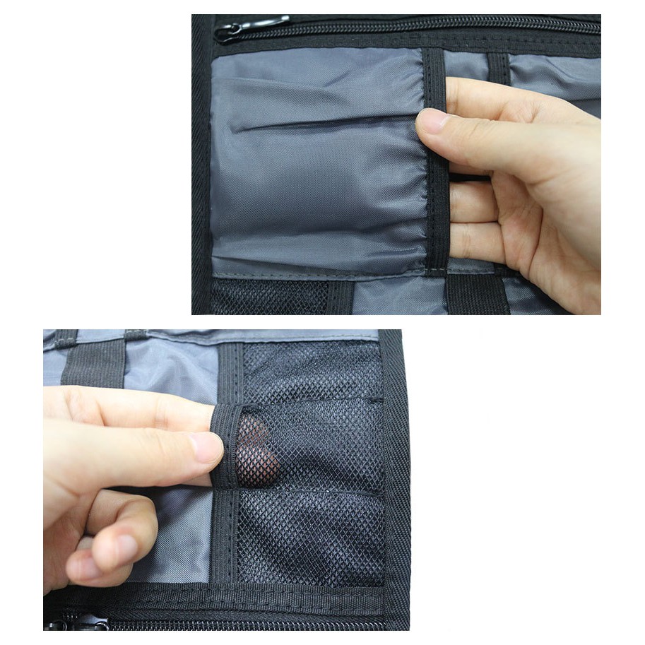 Túi kiểu gấp gọn, bên trong có nhiều ngăn nhỏ và dây cố định giúp người dùng dễ dàng sắp xếp đồ dùng. Rất tiện cho người dùng để dây sạc, pin dự phong,...