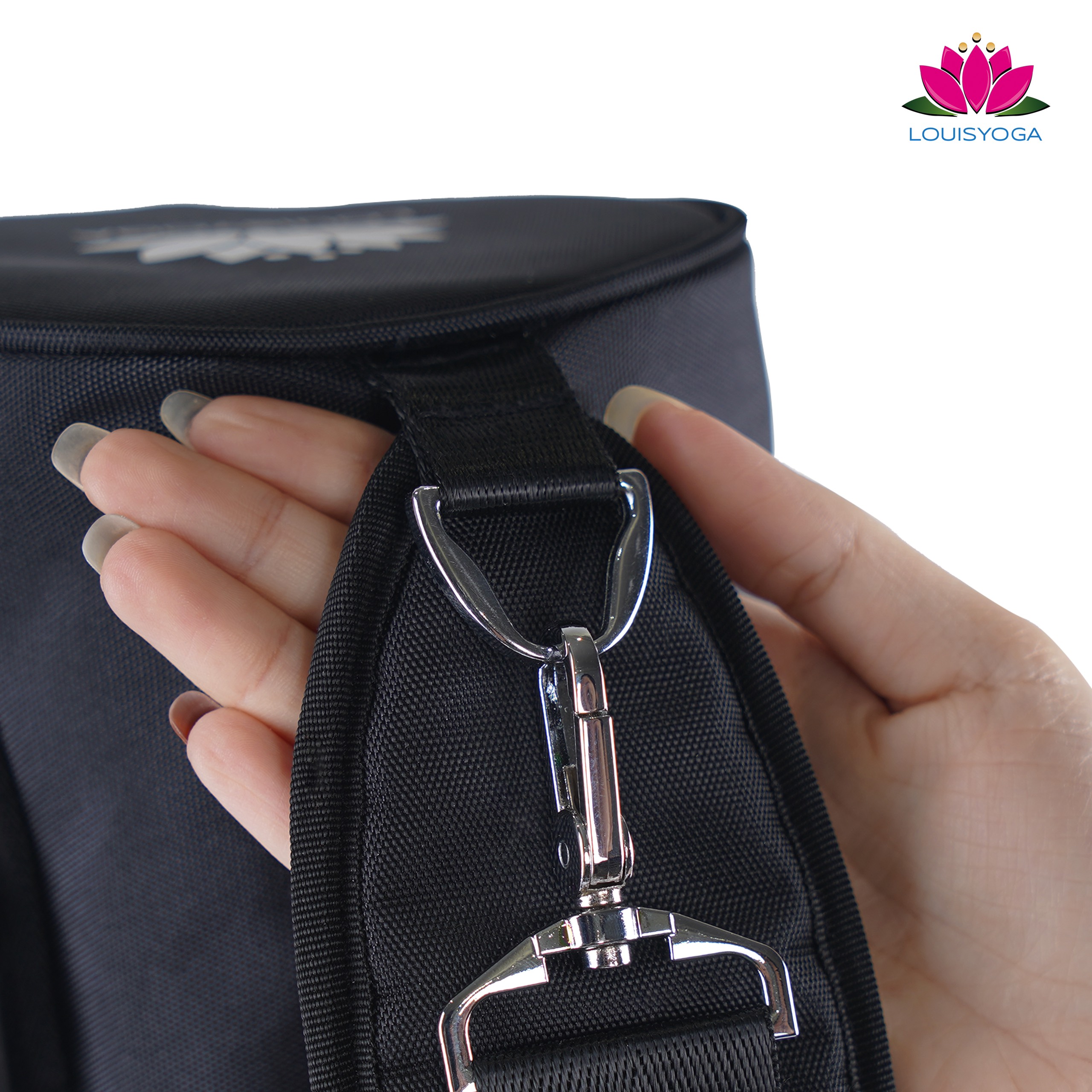 ️ Dây đeo của túi LOUIS được thiết kế 2 móc khóa thép mạ Niken Crom sáng bóng, chắc chắn và có thể điều chỉnh độ dài hay ngắn theo sở thích. Đặc biệt đầu dây đeo có đệm vai lót mút dầy, tránh cho bạn bị tê hay đau khi phải mang thảm tập LOUIS lâu trên vai.