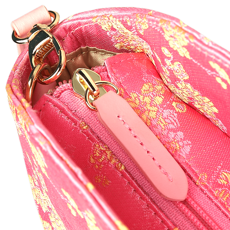 Bên trong túi gấm Ostara, mọi chi tiết đều được chú trọng để mang lại sự tiện lợi tối đa. Túi có một ngăn lớn chính và hai ngăn phụ nhỏ, đủ để nàng sắp xếp các vật dụng cần thiết như điện thoại, ví tiền, chìa khóa, son môi… Các ngăn phụ được thiết kế thông minh để giữ các vật dụng gọn gàng và dễ dàng lấy ra khi cần. Lớp lót bên trong túi mềm mại, giúp bảo vệ các món đồ của bạn khỏi những va đập nhẹ.