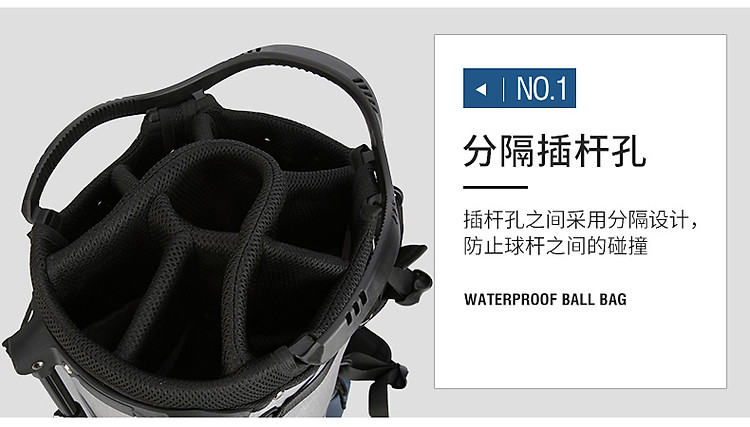 - Có thể chứa tổng cộng 14 cây gậy, bạn có thể đặt gậy theo thói quen của riêng mình, và dễ dàng đặt cả bộ gậy để tránh va chạm giữa các gậy!