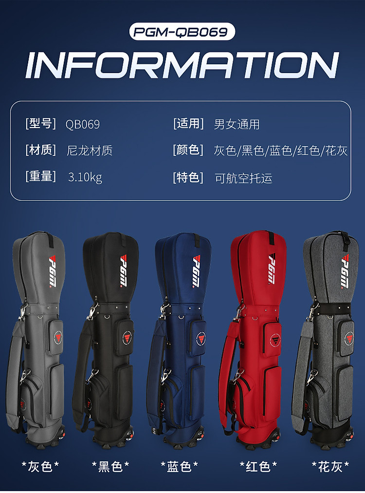 - Tên sản phẩm: Túi Gậy Golf Fullset Có Bánh Xe Nhỏ Gọn - PGM Ultra Light Consigment Golf Bag - QB069