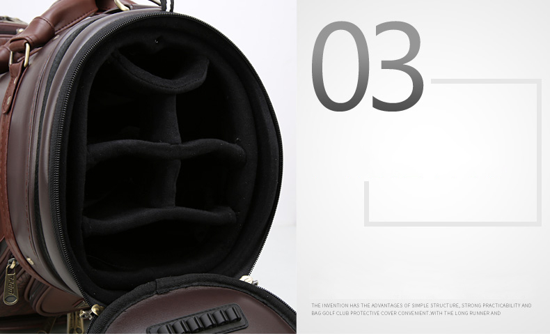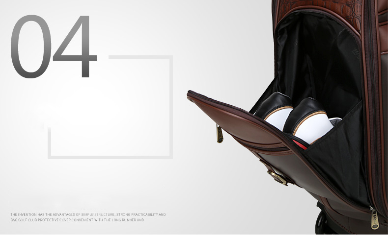 Ngoài ngăn lớn đựng gậy, túi thiết kế có nhiều ngăn nhỏ đựng phụ kiện Golf: tee, bóng, găng tay, khăn lau mồ hôi, Ngăn đựng giày riêng biệt tránh làm bẩn khi để chung với các phụ kiện khác.