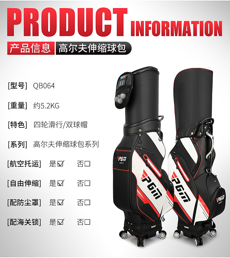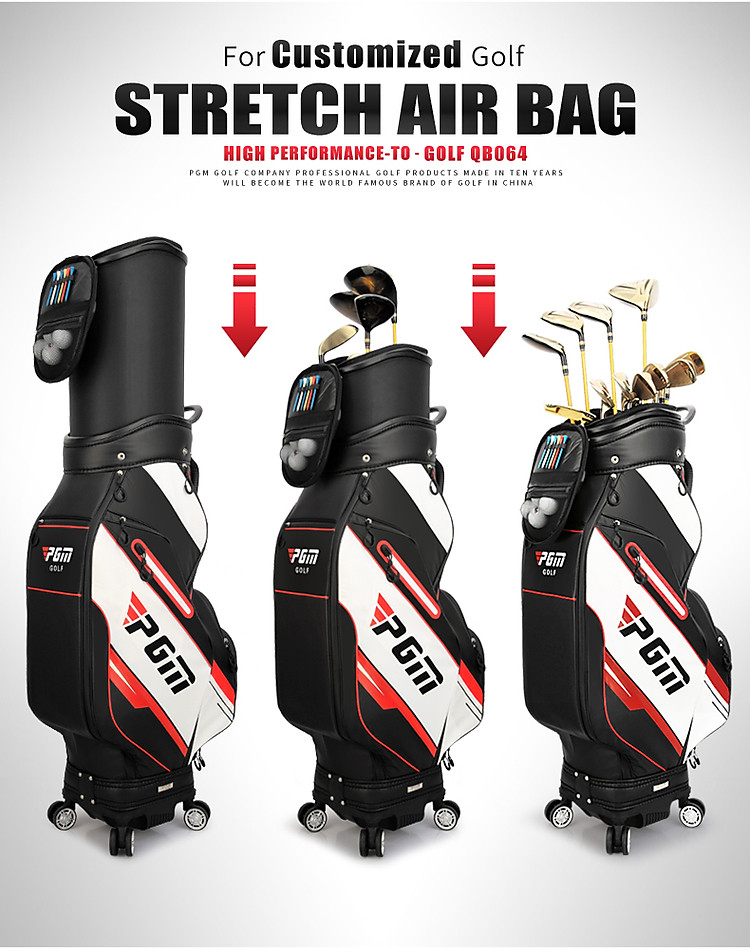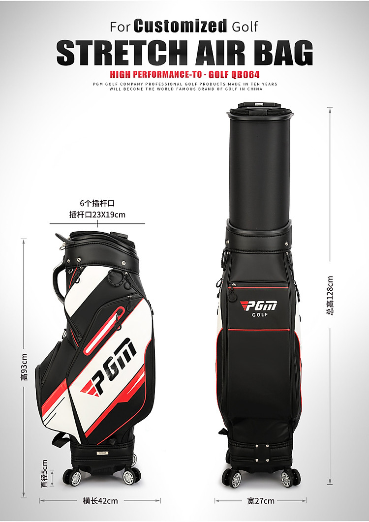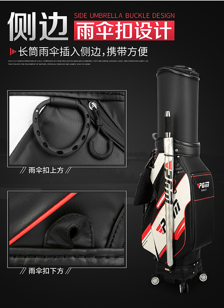 - Tên sản phẩm: Túi Gậy Golf Fullset Nắp Cứng 4 Bánh Xe - PGM 4 Universal Wheel Retractable Golf Bag - QB064