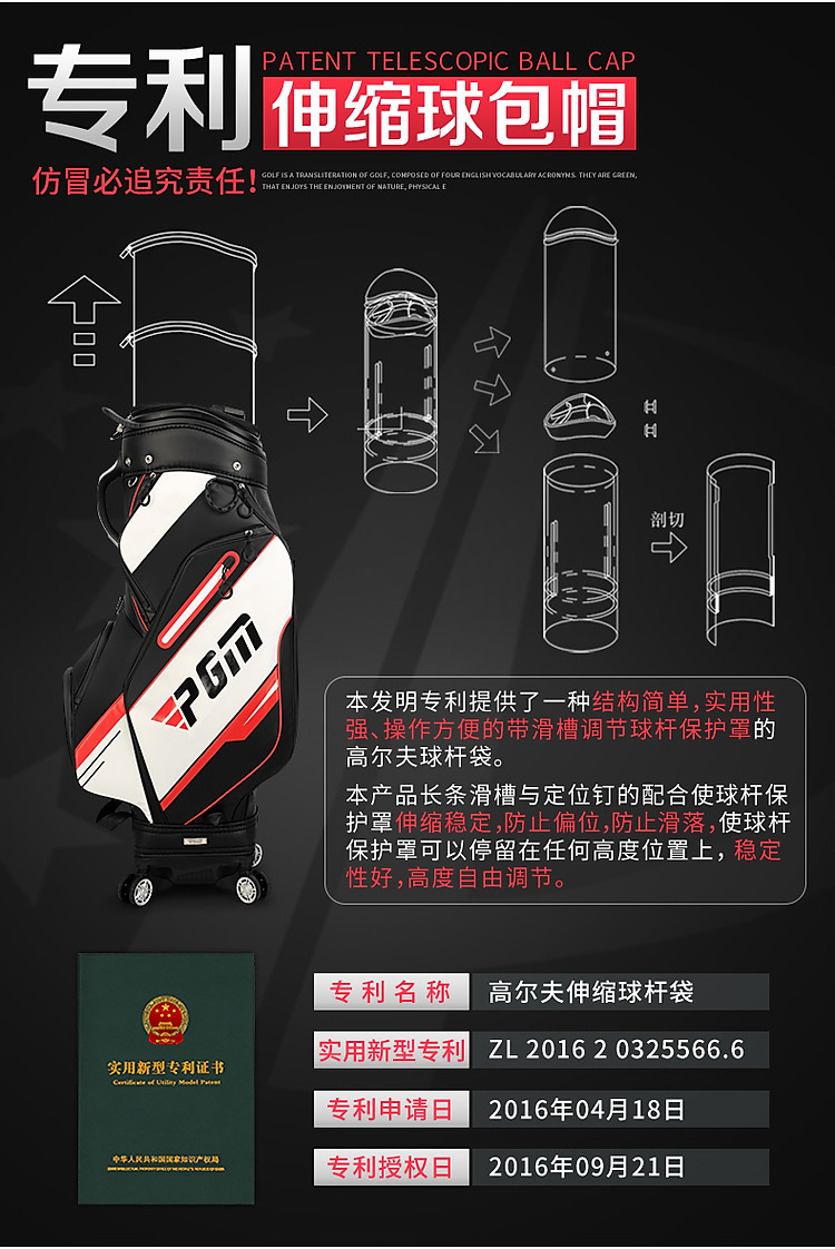 - Có thể chứa được bộ 14 gậy Golf fullset.