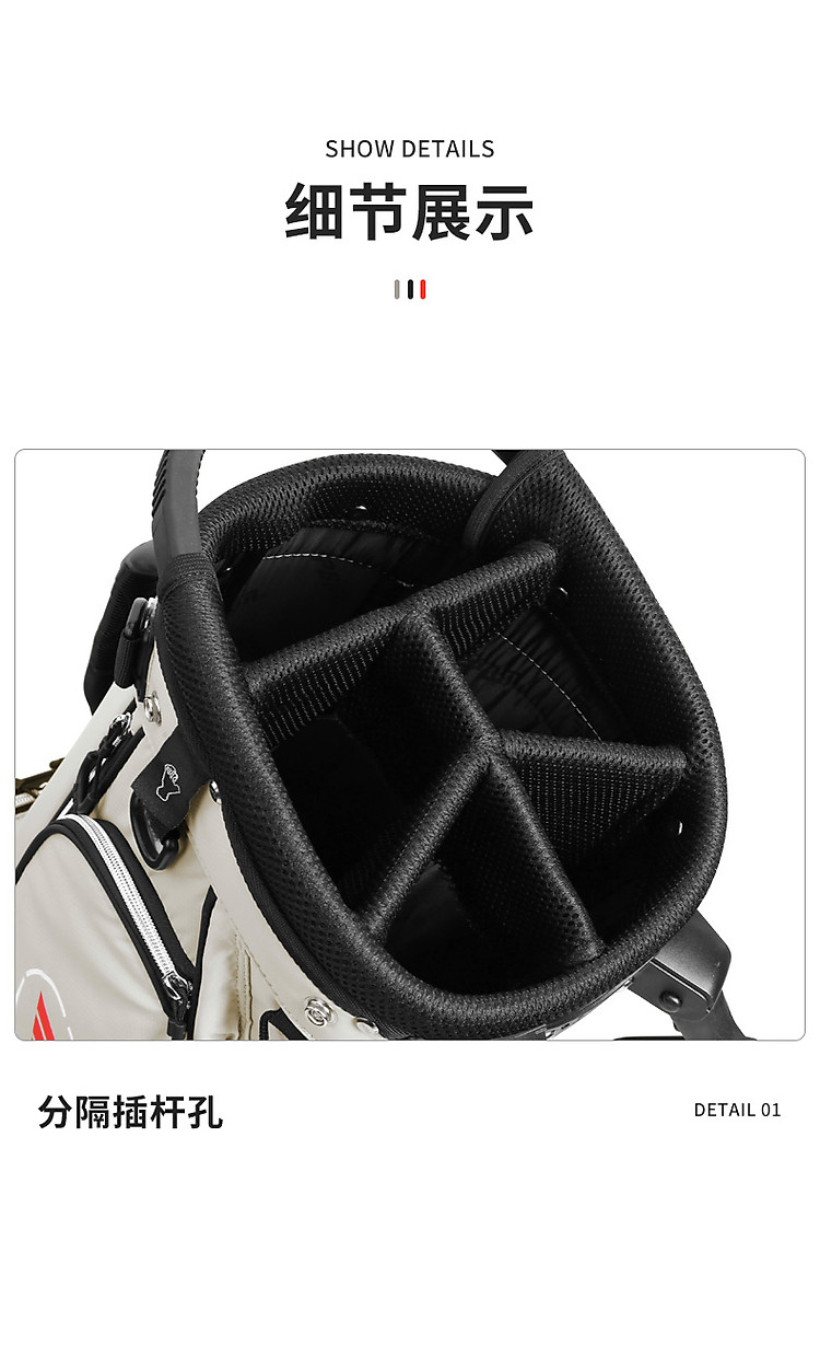 - Túi gậy có rất nhiều ngăn nhỏ có thể đựng các phụ kiện Golf khi lên sân như: bóng, tee, giày,...