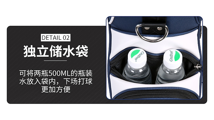- Túi dây kéo có dung lượng lớn và có ngăn có thể được sử dụng để đựng bóng golf, găng tay, bao bọc đầu gậy, v.v.