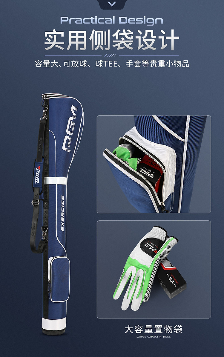 - Túi bên cạnh có thể chứa găng tay golf, điện thoại, chìa khóa, bóng golf, khăn golf...