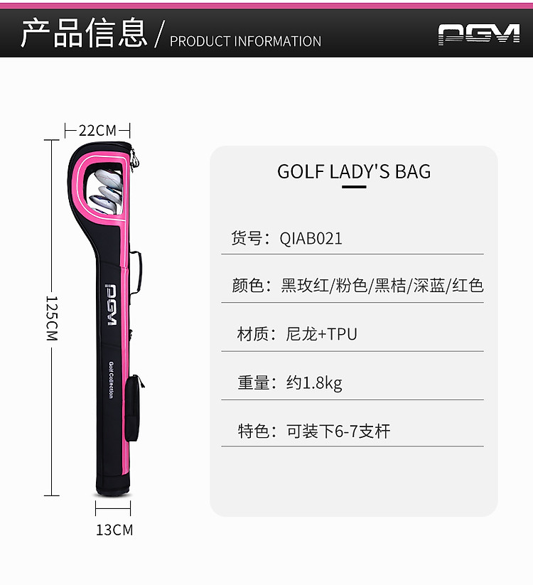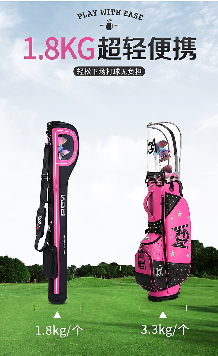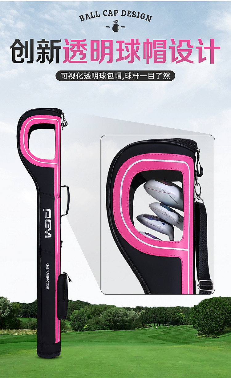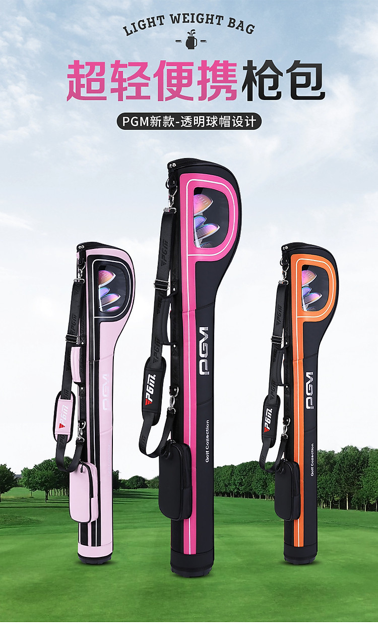 - QIAB021 là mẫu túi gậy tập golf đa năng, siêu nhẹ dành cho nam với nắp túi gậy trong suốt để dễ dàng quan sát tình trạng gậy bên trong.