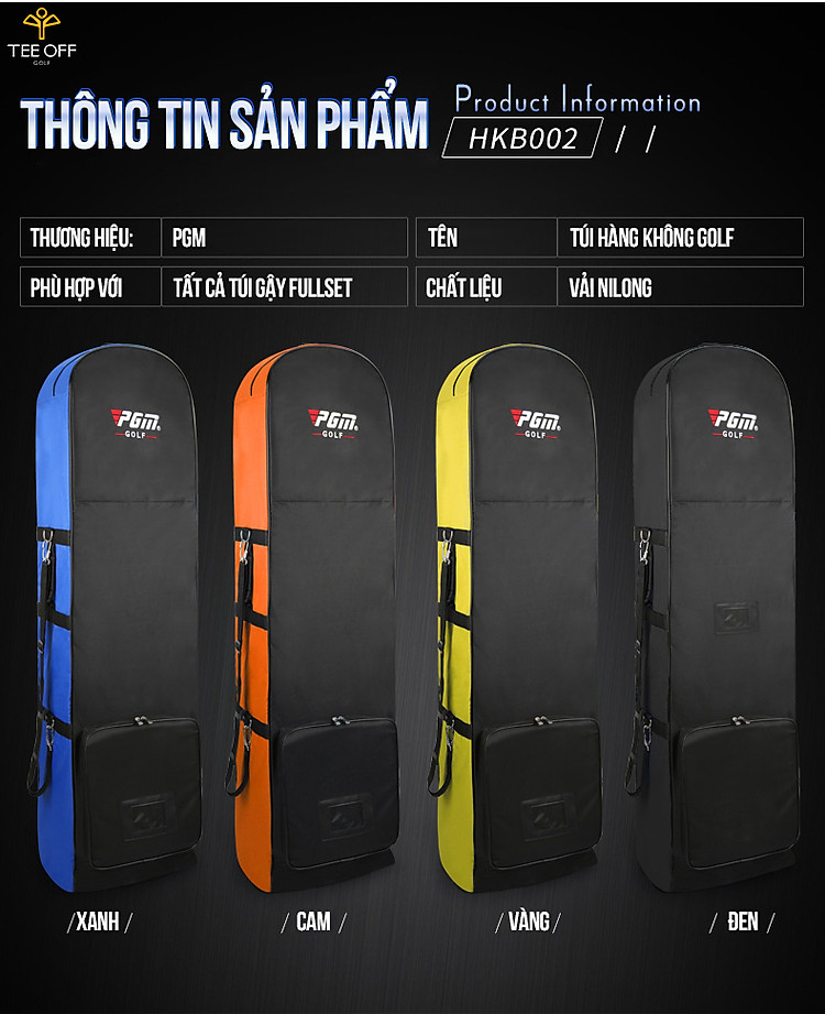 - HKB002 là mẫu túi hàng không chuyên dụng dùng để đựng gậy khi đi máy bay, là vật dụng rất cần thiết đối với người chơi Golf khi phải thường xuyên di chuyển trên những quãng đường xa.