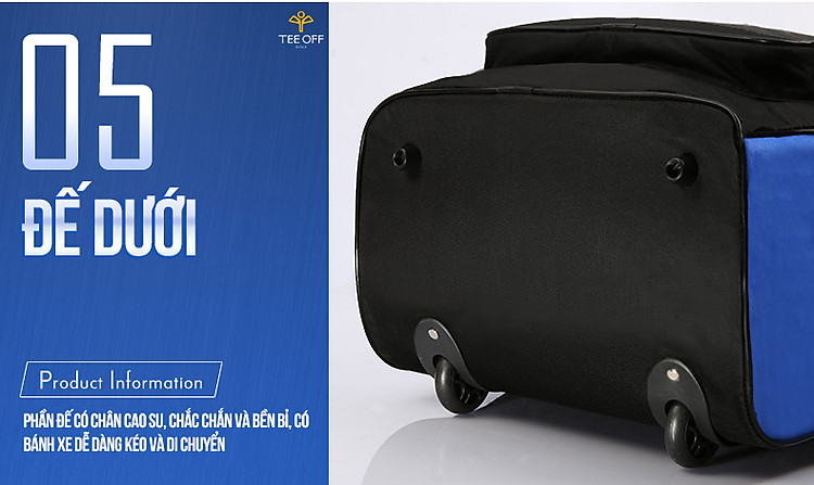 - Các bộ phận đế và bánh xe sử dụng nhựa cao cấp, giúp ổn định túi, bảo quản các gậy golf chống va đập.