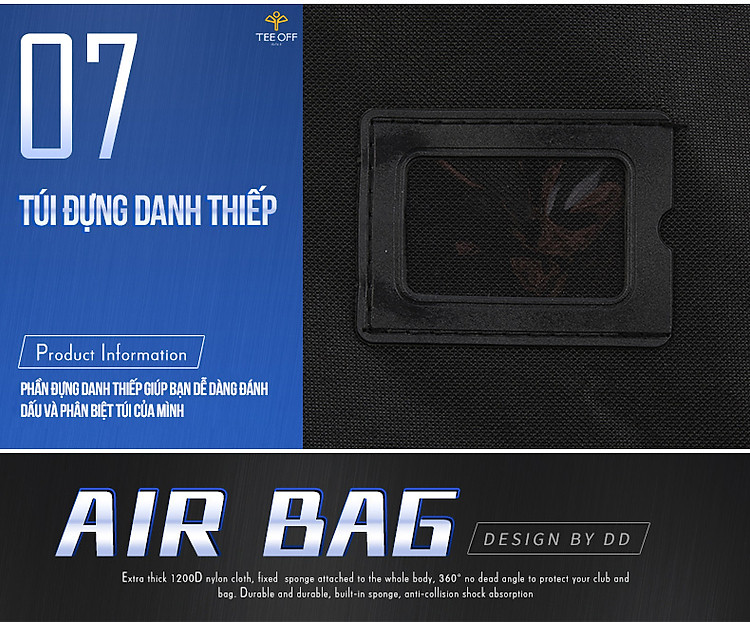 - Vải Nylon độ bền cao, chống thấm nước cao cấp, chống bụi bẩn, chống xước cho túi Golf.
