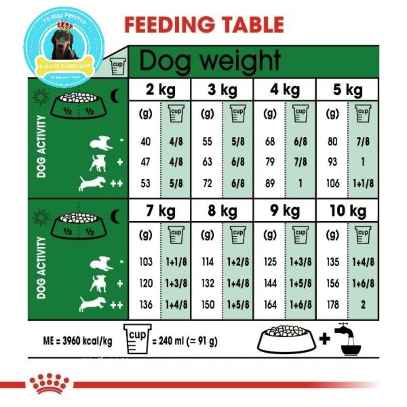 THỨC ĂN CHO CHÓ ROYAL CANIN MINI ADULT Dành cho chó kích cỡ Mini (cân nặng tối đa dưới 10kg) và đang trong lứa tuổi Adult từ 10 tháng tuổi trở lên. Những chú chó có kích cỡ nhỏ chỉ cần những loại thức ăn có thiết kế nhỏ, tuy nhiên chúng lại cần nhiều năng lượng hơn giống chó lớn vì chúng có thời kỳ tăng trưởng ngắn hơn và mạnh mẽ hơn. Thêm vào đó, tuổi thọ trung bình của giống chó nhỏ cao hơn giống chó lớn, chính vì vậy chúng khá khắc khe trong việc ăn uống. Công thức của ROYAL CANIN Mini Adult được thiết kế để đáp ứng các nhu cầu dinh dưỡng đặc thù của giống chó nhỏ trong độ tuổi dưới 10 tháng. Tùy thuộc vào từng giống chó mà đặc tính sinh lý khác nhau, thiết kế hàm, cấu trúc xương, hệ thống tiêu hóa và nhu cầu năng lượng cao. Giúp duy trì sức khoẻ tiêu hóa của chó Hỗ trợ nhu cầu năng lượng cao Thiết kế hạt giúp giảm sự hình thành cao răng Hỗ trợ hệ miễn dịch khỏe mạnh 100% dinh dưỡng cân bằng 100% đảm bảo an toàn ROYAL CANIN MINI ADULT dành cho chó con từ 0 đến 10kg và trên 10 tháng tuổi. Thiết kế hạt Thiết kế hạt giúp làm giảm sự hình thành cao răng.