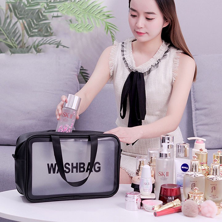 Túi dạng hộp đựng mỹ phẩm, đồ trang điểm đi du lịch washbag trong suốt có khóa kéo, chống thấm nước tiện dụng