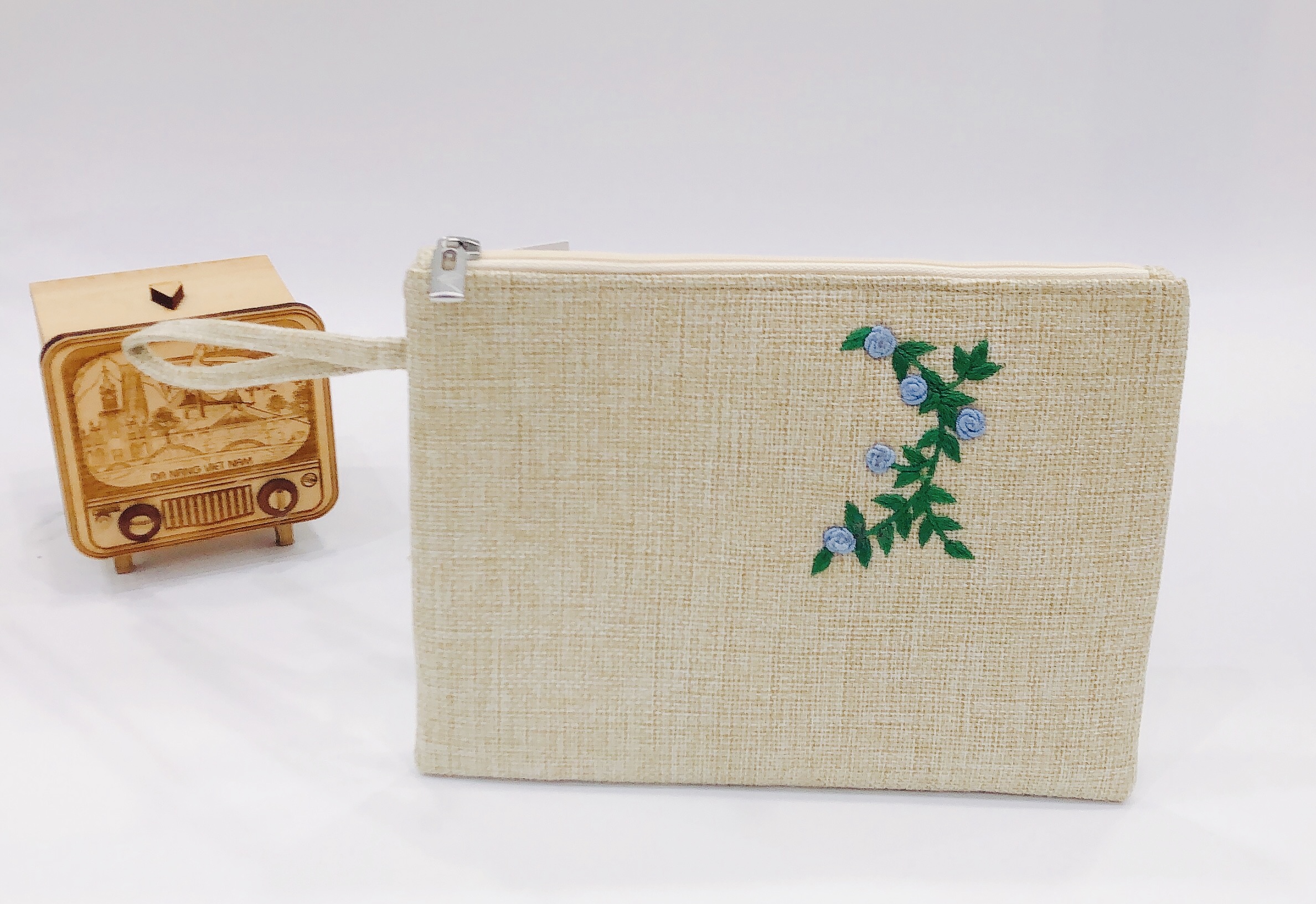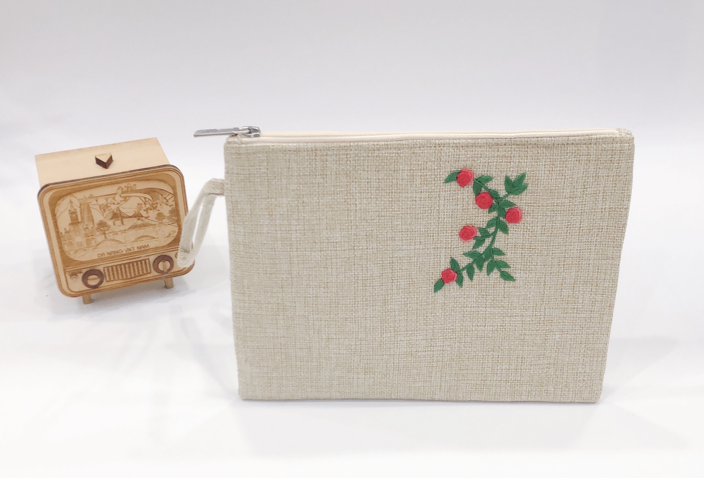 Túi letter cầm tay thêu 100% handmade, kết hợp hoa hồng được thêu thả rơi tinh tế