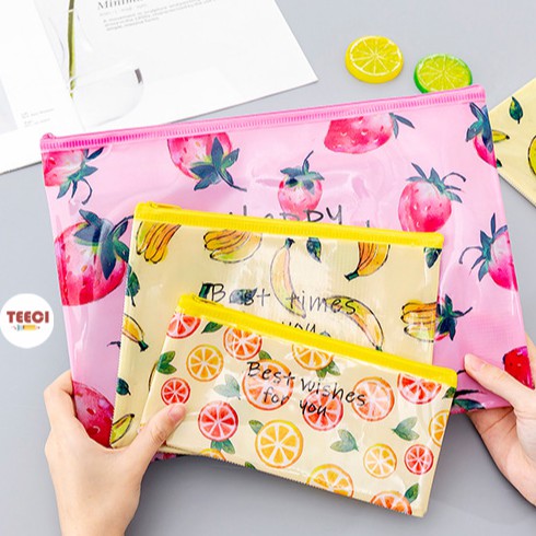 Giới thiệu Túi Lưới Trong Suốt Chống Thấm Nước Sức Chứa Lớn Đựng Đồ Cá Nhân Bút Tài Liệu Hình Hoa Quả Khóa Kéo T133