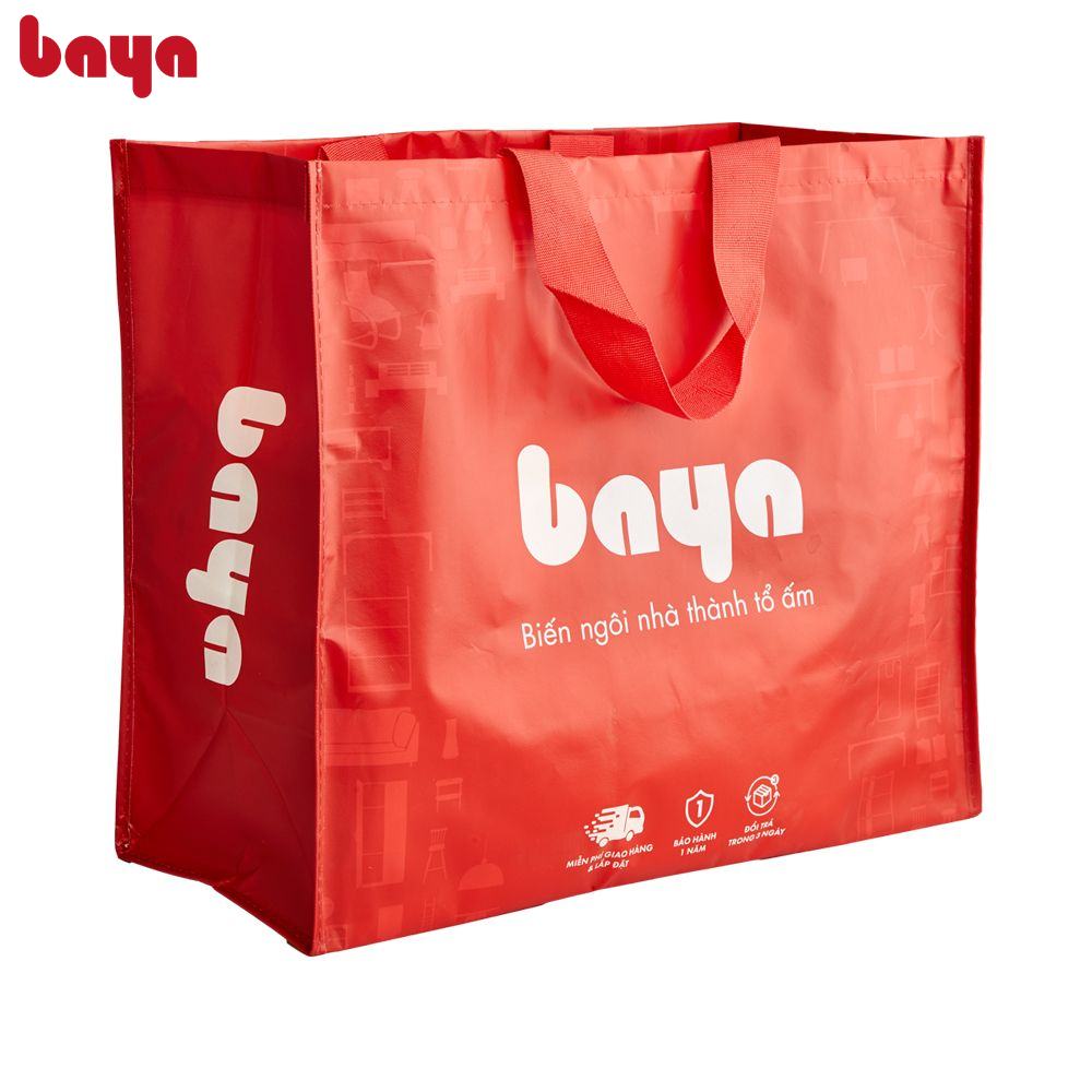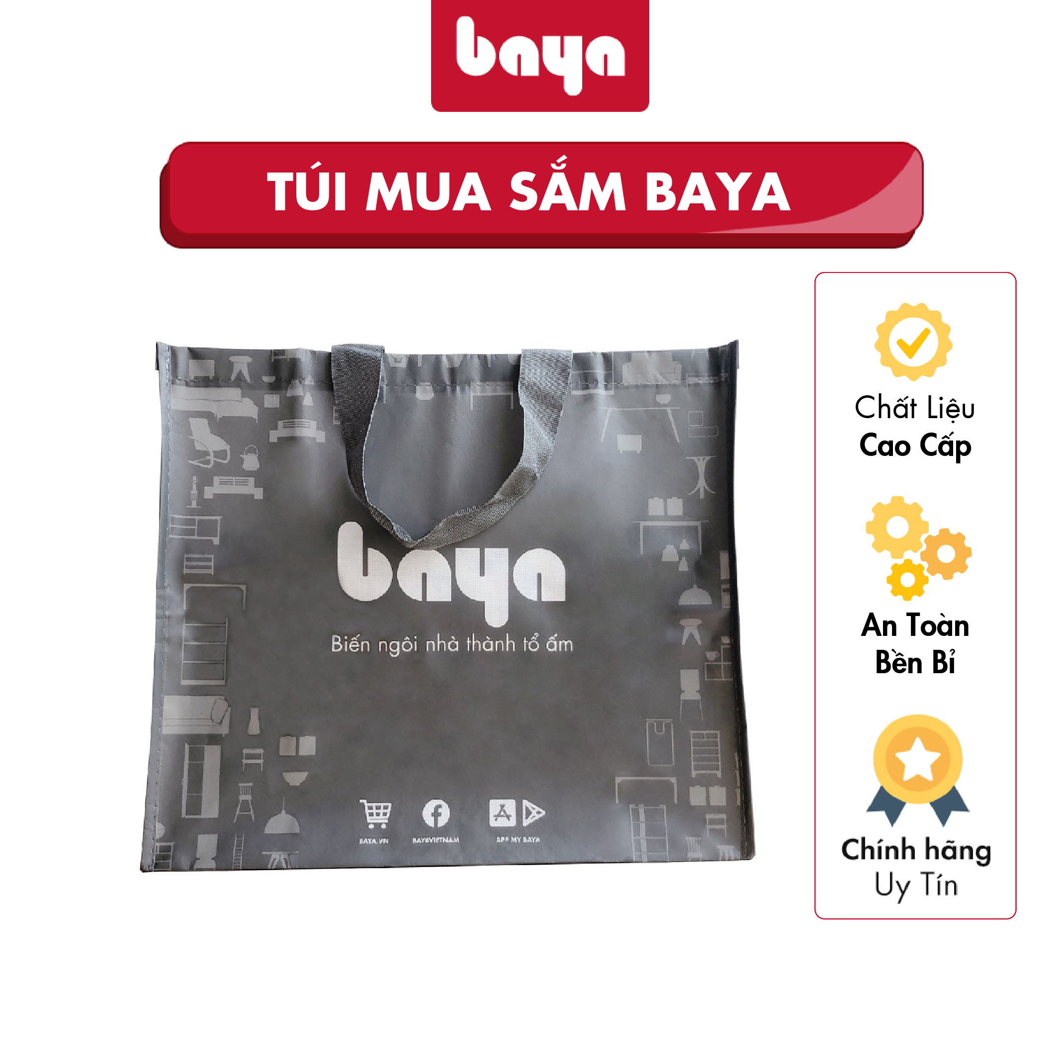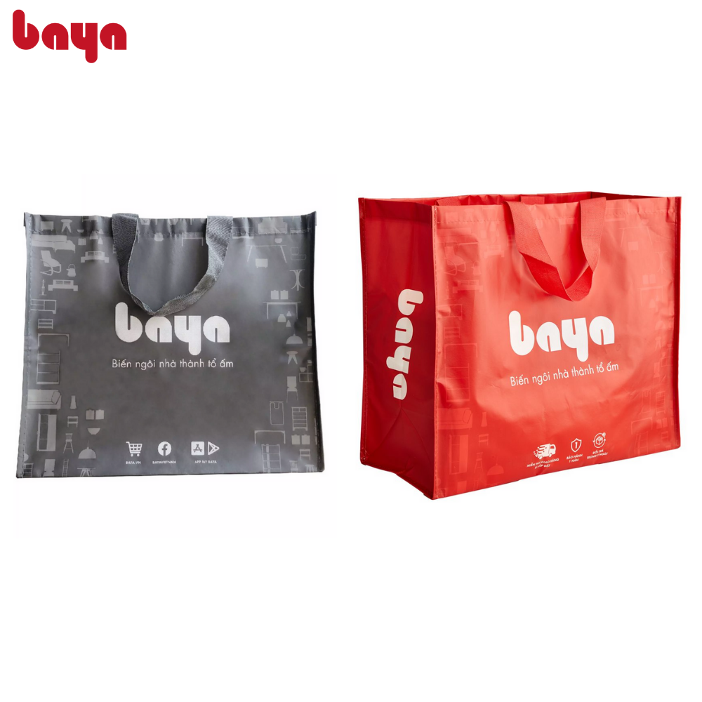 Túi mua sắm BAYA làm từ chất liệu PP-non woven mềm mại, chống trầy xước tố. Mỏng, nhẹ, dễ làm sạch và mang theo. Tự phân hủy trong vài năm