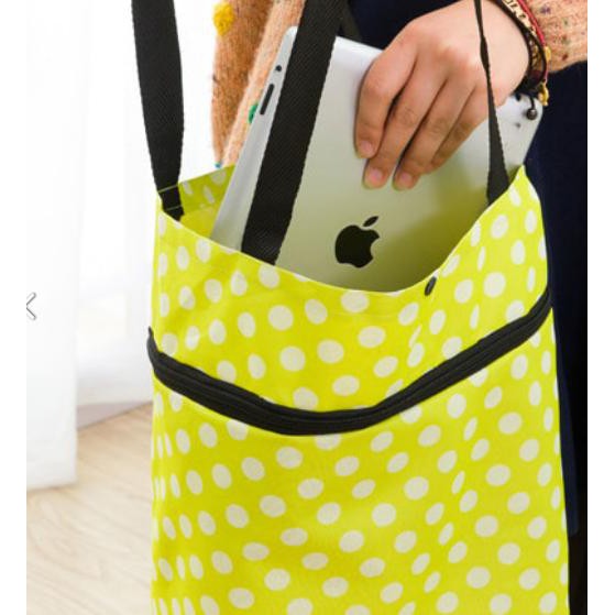 Bánh xe chắc chắn với lốp cao su có lực ma sát lớn giúp xe dễ dàng di di chuyển qua những khu vực có địa hình mấp mô, cầu thang. - Có tay cầm tiện lợi dễ dàng sử dụng theo hai cách khác nhau: là túi xách hoặc được đẩy bằng tay. - Có thể gấp gọn khi không sử dụng, thuận tiện cho việc cất giữ và bảo quản, tiết kiệm không gian tốt đa. - Chất liệu: Vải không dệt có tráng lớp nhựa bên trong chống thấm. Chân đỡ bằng thép Màu sắc tươi tắn, trẻ trung, nổi bật.