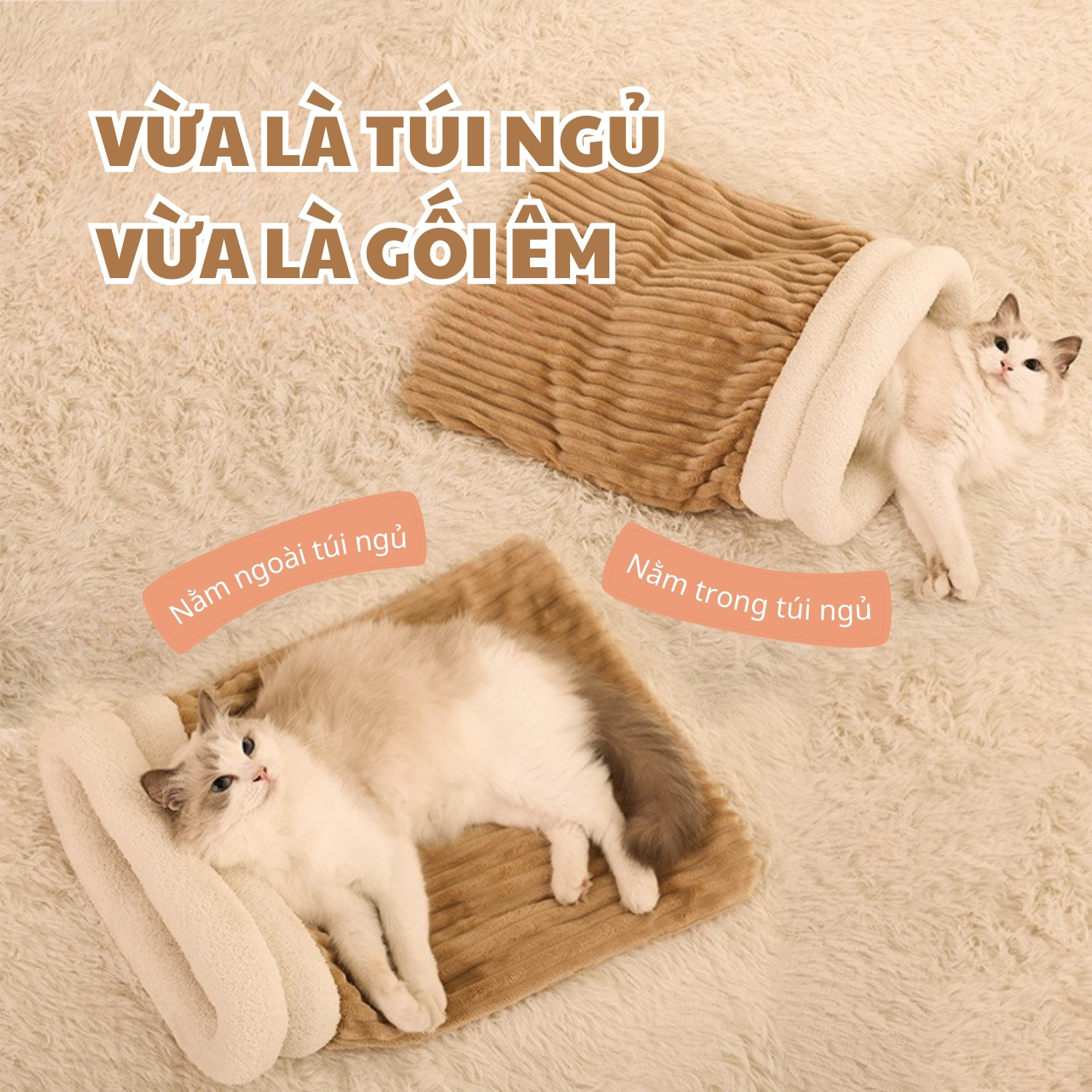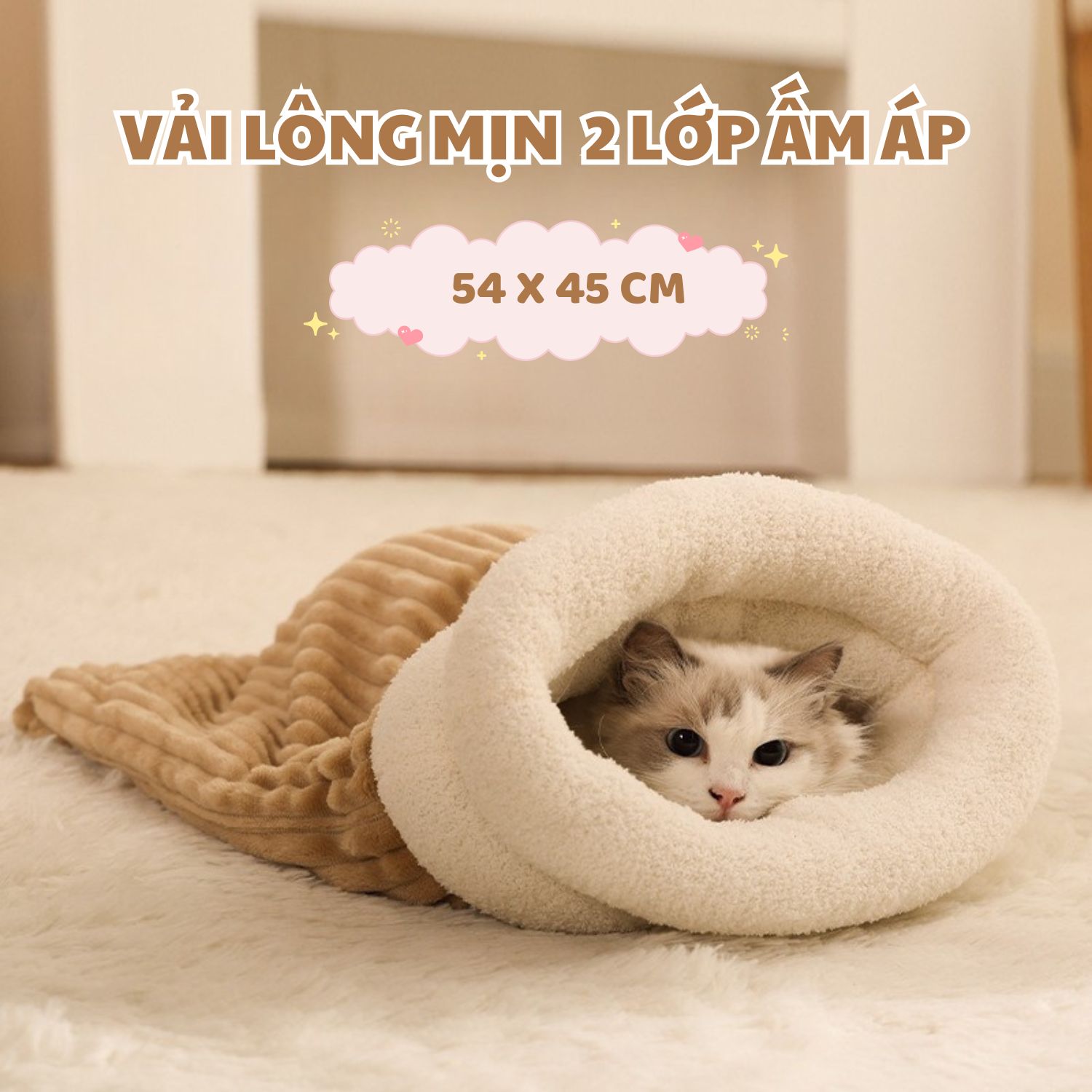 - Tên: Túi ngủ cho mèo Marshmeollow thiết kế 2 lớp vải lông ấm áp, cho bé giấc ngủ ngon