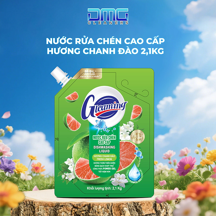 Giới thiệu Túi Nước Rửa Chén Bát Cao Cấp Gleaming 2,1Kg Hương Chanh Đào