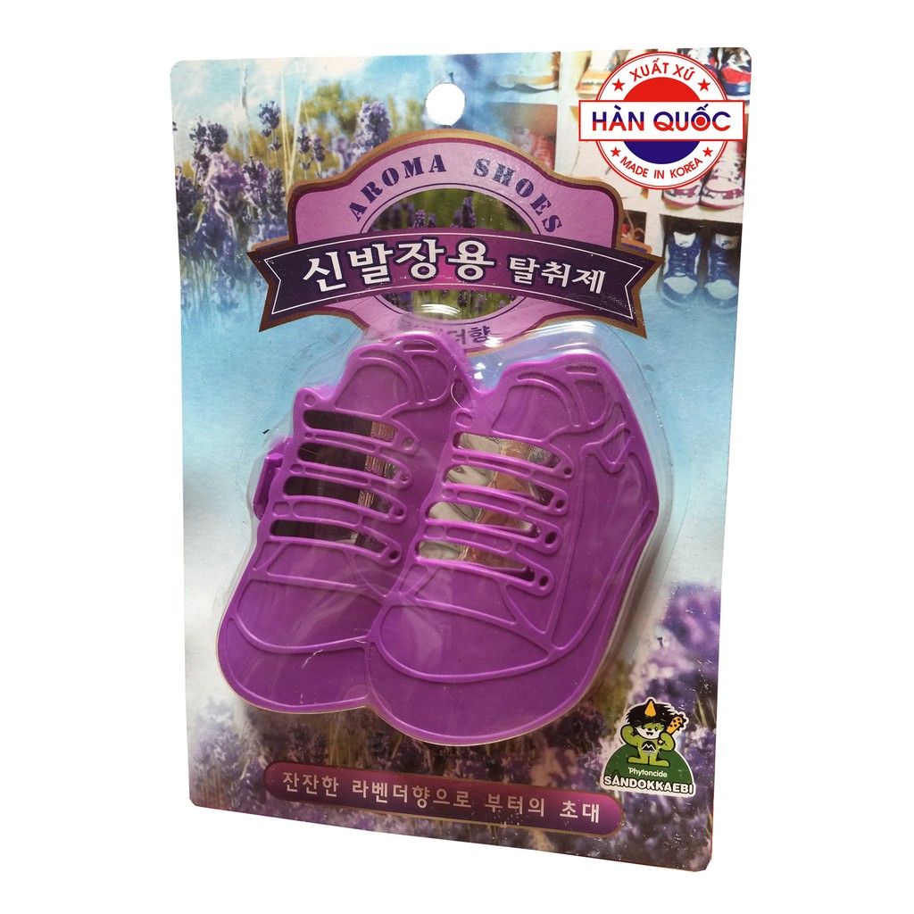 Tên sản phẩm :Túi Thơm Khử Mùi Hôi Tủ Giày Dép Sandokkaebi Hàn Quốc Công dụng : Khử mùi hôi ẩm mốc tủ để giày dép ,mang lại hương thơm tươi mát, dịu nhẹ cho giày dép Hướng dẫn sử dụng : Mở nắp nhựa , Dùng kéo cắt đầu gói chứa tinh dầu sau đó đặt gói vào hộp đóng nắp lại, dùng băng dính 2 mặt có sẵn dán vào cạnh tủ để giày dép là xong Thành phần : Naphtha hydroprocessed , ethanol , tinh dầu hoa cỏ thiên nhiên… Khối lượng tịnh : 4g Trọng lượng cả bao bì : 50g Kích thước bao bì : D 19 x R 13,5 x C 2 Cm Hãng sản xuất : Sandokkaebi Co…,Ltd Xuất xứ : Hàn Quốc Chú ý : Để xa tầm tay trẻ em và vật nuôi , tránh ánh nắng trực tiếp và nhiệt độ cao