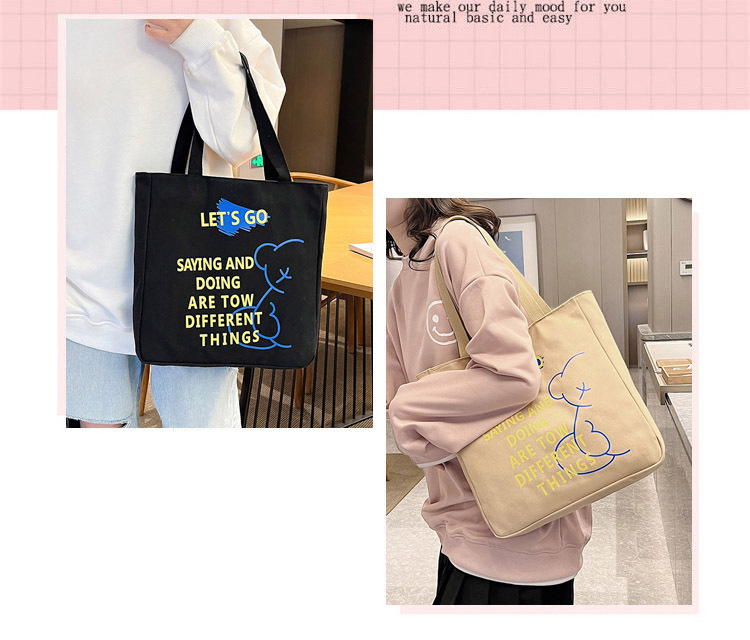 - Túi vải xinh xắn họa tiết gấu in chữ