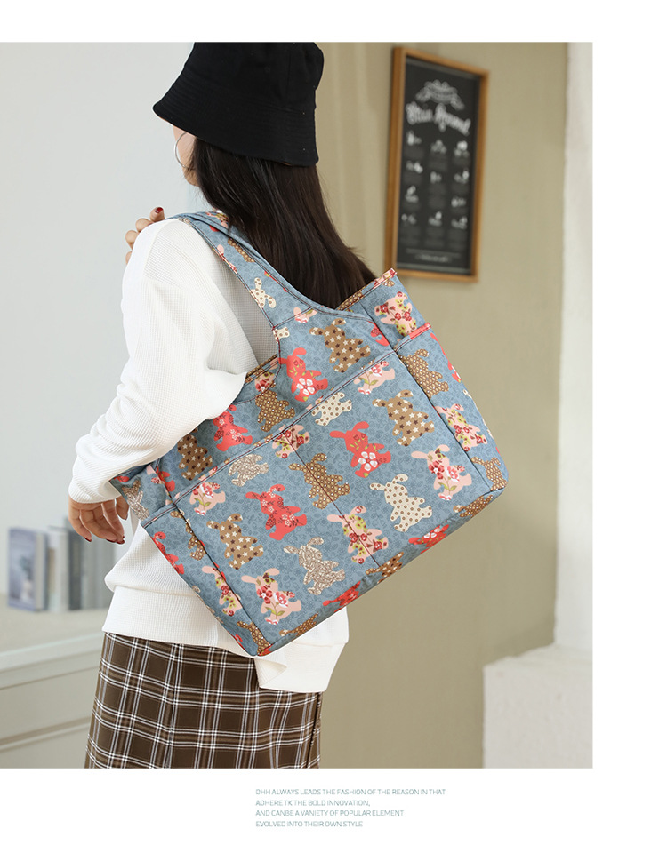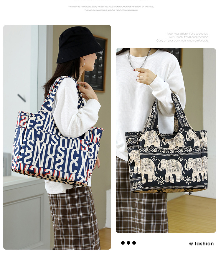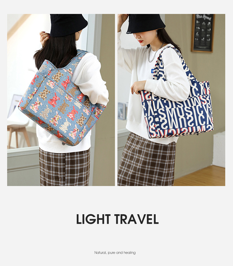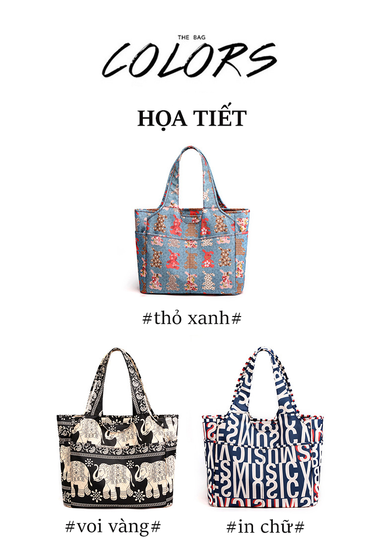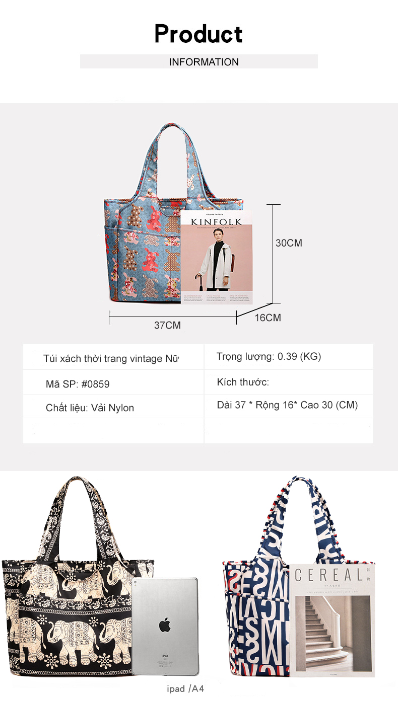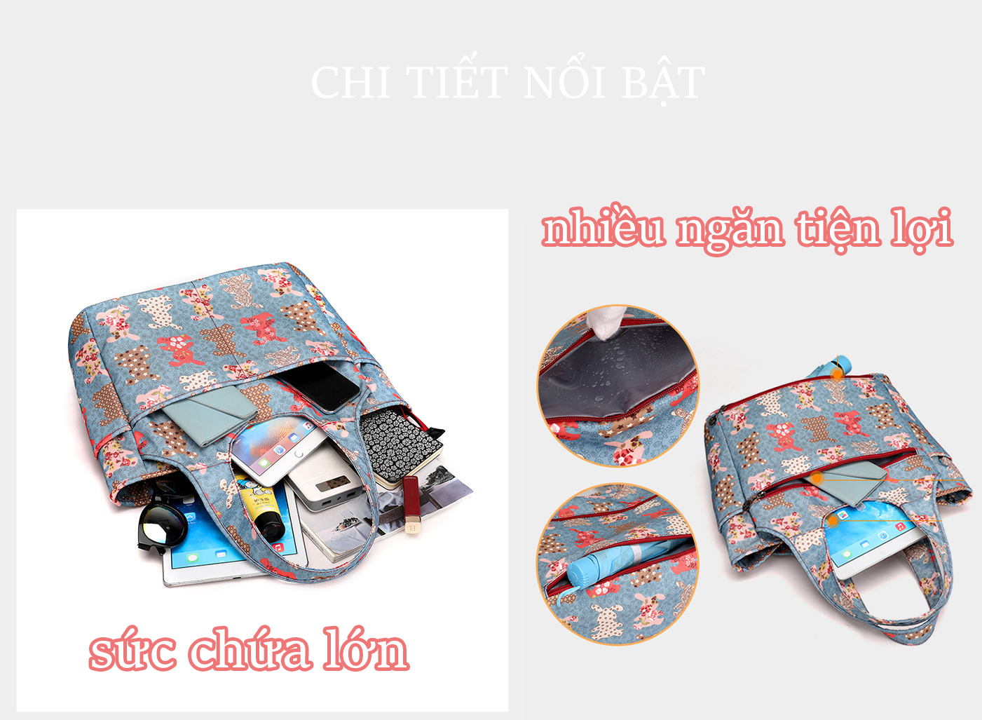 Túi tote vintage nữ size lớn vải nylon chống nước cao cấp họa tiết thời trang nhiều ngăn tiện lợi 0859