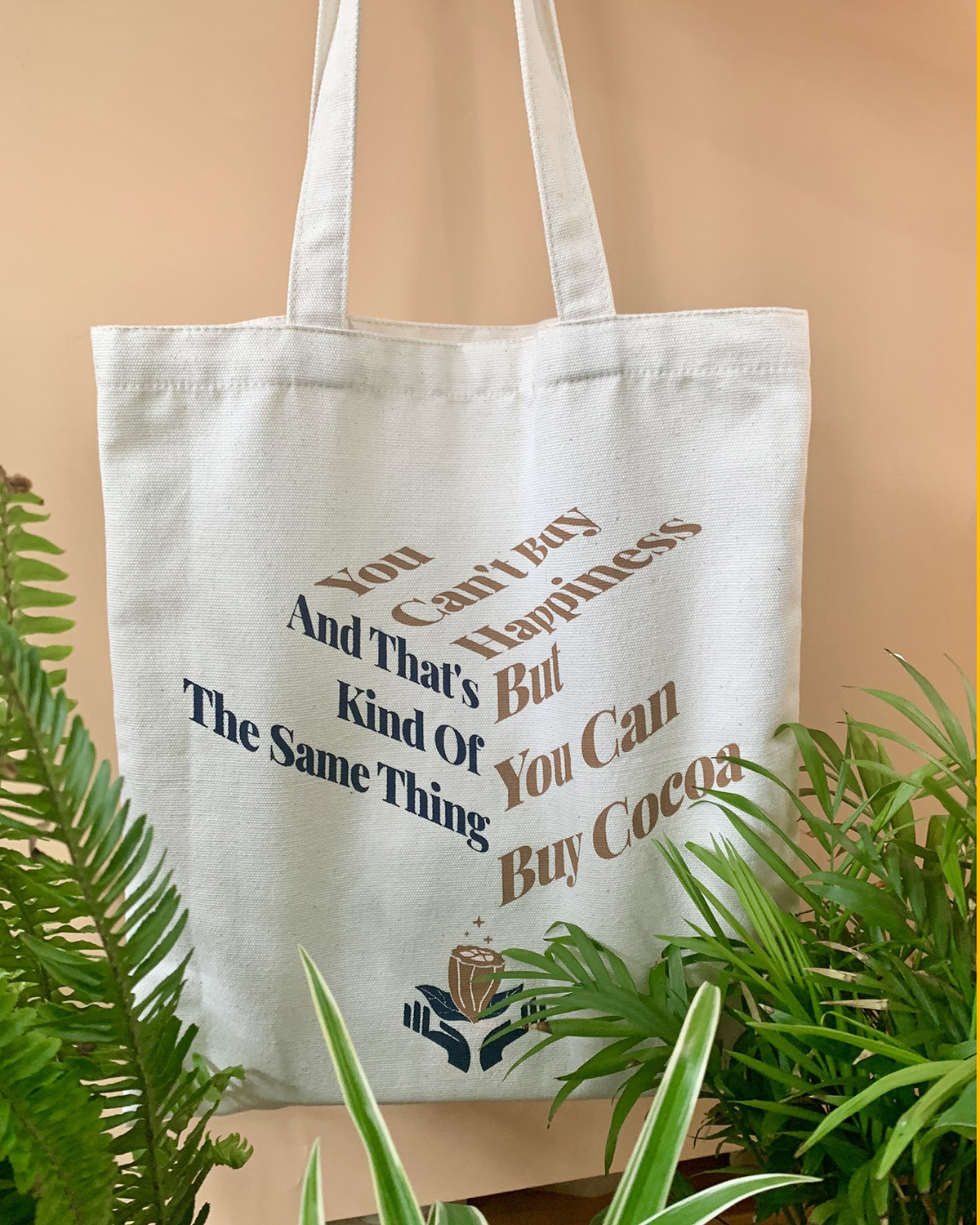 Túi vải Canvas được sản xuất từ sợi của cây cầu gai và được dệt theo thớ ngang, dọc đan xen. Với vẻ ngoài dày dặn, cùng với các họa tiết cacao thủ công đặc trưng với thùng gỗ lên men và Đá Ba Chồng nổi tiếng ở Định Quán – Đồng Nai, túi vải canvas phù hợp để đựng đồ dùng cũng như món quà tặng cho người thân, bạn bè.